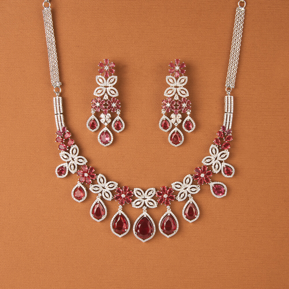 Kanhai Jewels offers an exclusive collection of finest quality crafted Fashion Jewellery in various colors. We make sure that our collection of Cubic Zirconia Classic Necklace Set With Rhodium Plating are beautiful, elegent & will surely galvanize you, because our products are unique, comfortable, fashion forward & very popular for the rich look. Base Metal of our product is Alloy, i.e Mixing of Copper & Brass. We pack all the products using quality packaging material to ensure safe and secure transportation.
