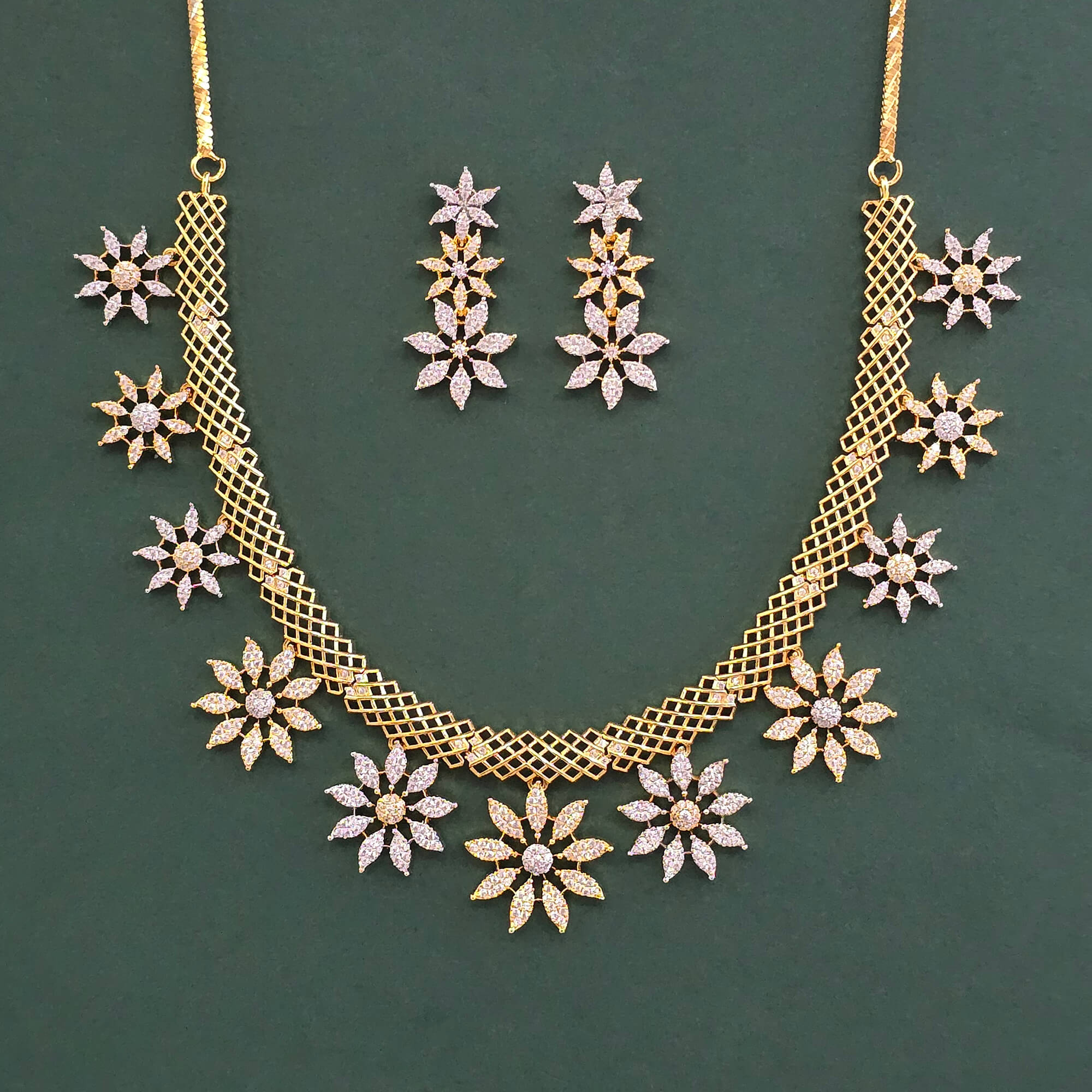 Home / American Diamond Necklace / cubic zirconia classic necklace with 2 tone plating