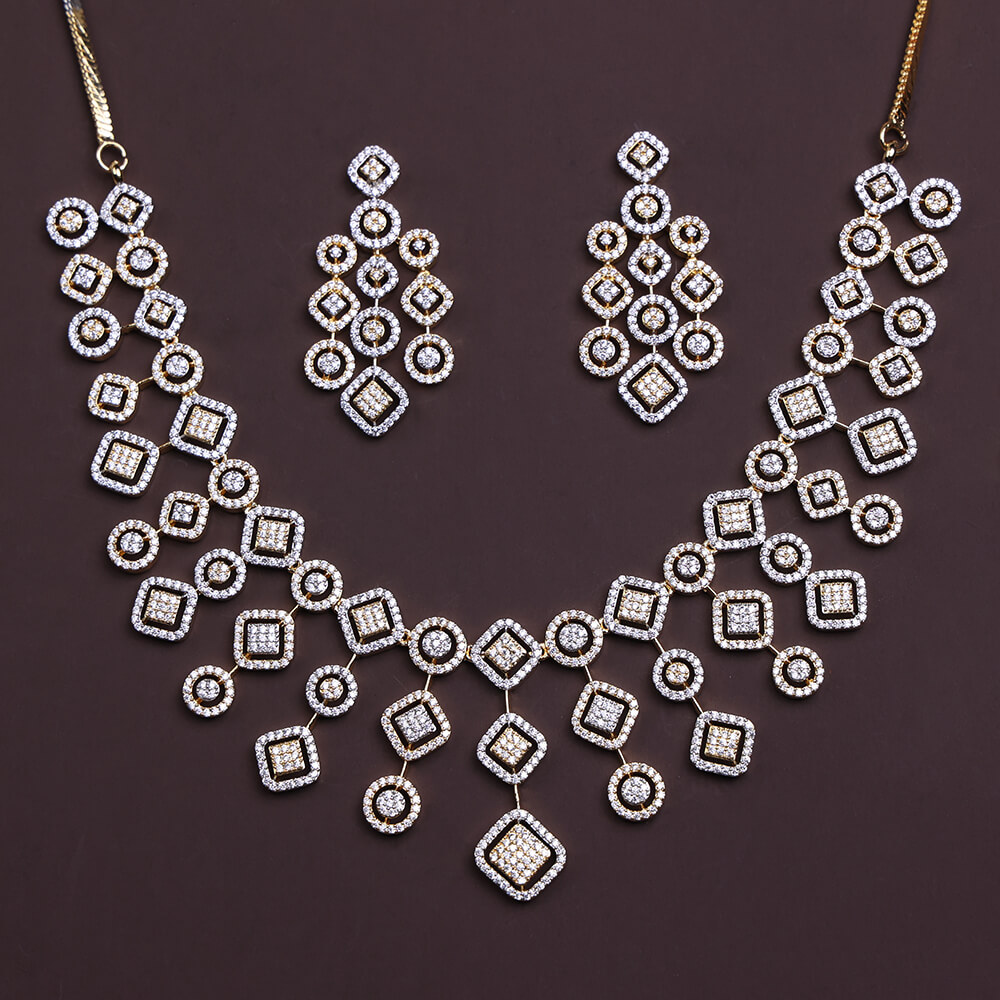 Kanhai Jewels offers an exclusive collection of finest quality crafted Fashion Jewellery in various colors. We make sure that our collection of Cubic Zirconia Classic Necklace With 2 Tone Rhodium Plating are beautiful, elegent & will surely galvanize you, because our products are unique, comfortable, fashion forward & very popular for the rich look. Base Metal of our product is Alloy, i.e Mixing of Copper & Brass. We pack all the products using quality packaging material to ensure safe and secure transportation.