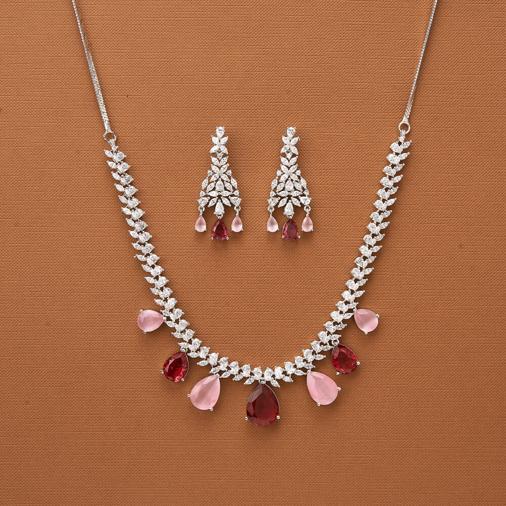 Home / American Diamond Necklace / cubic zirconia classic necklace with rhodium plating