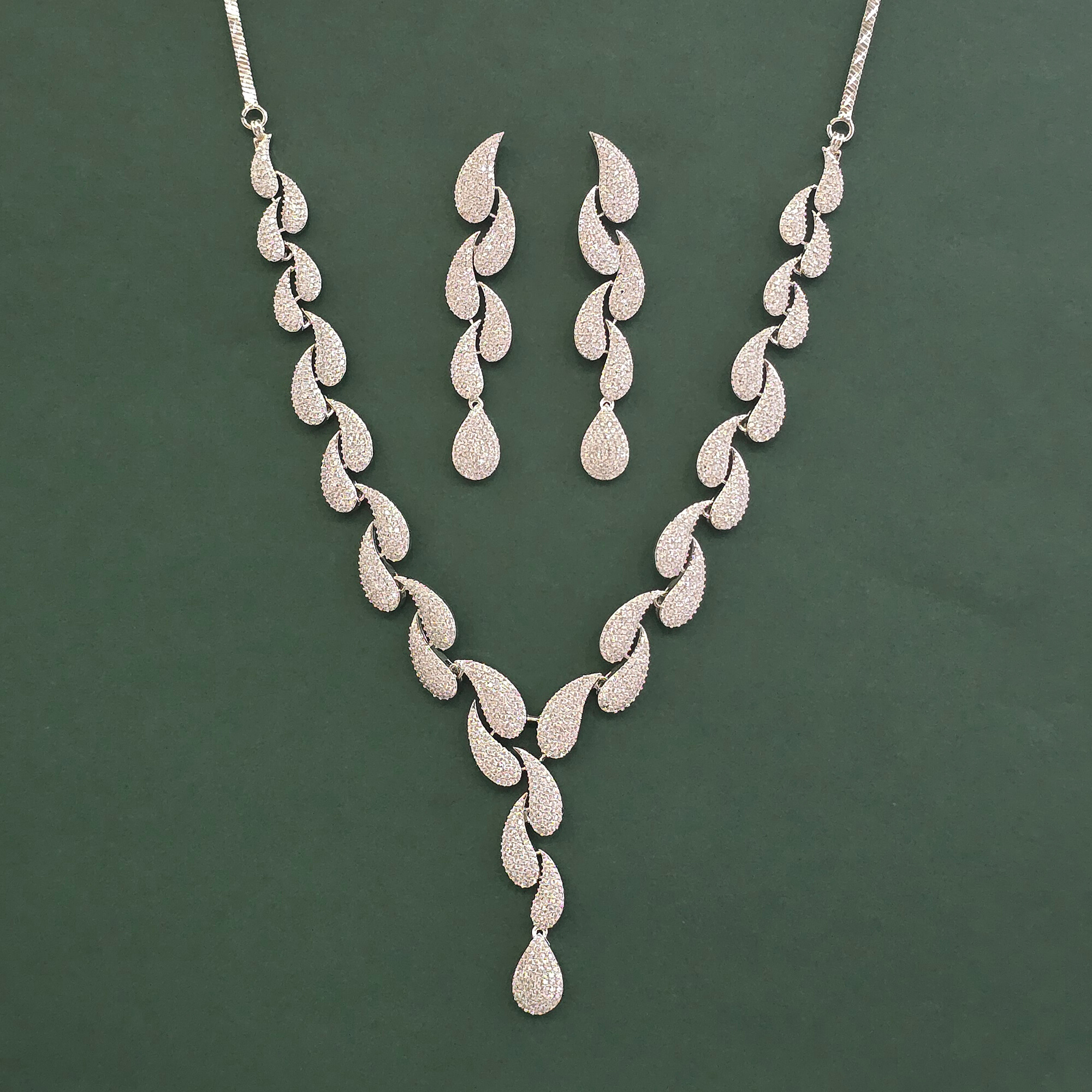 Home / American Diamond Necklace / cubic zirconia classic necklace with rhodium plating
