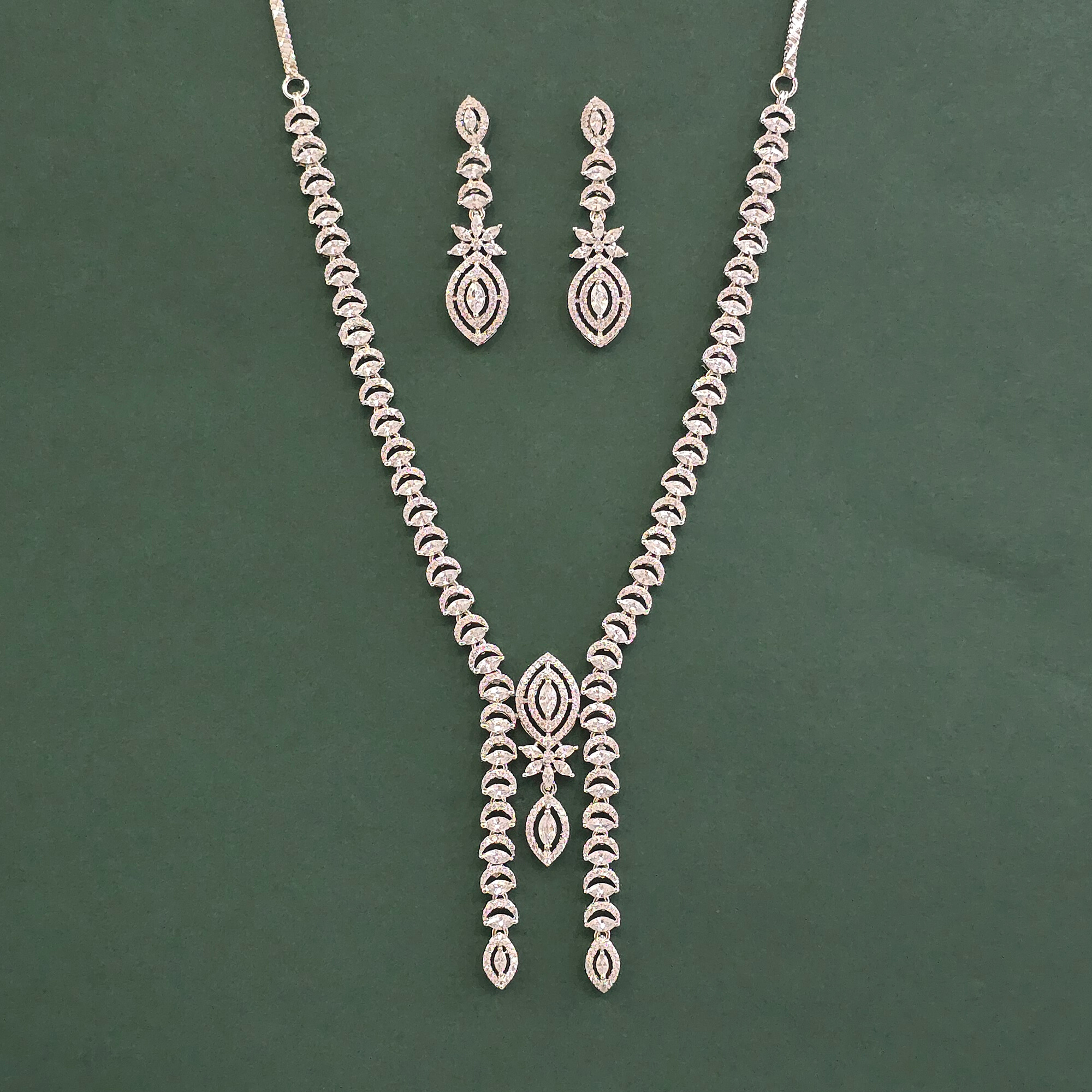 Home / American Diamond Necklace / cubic zirconia classic necklace with rhodium plating mehndi plating