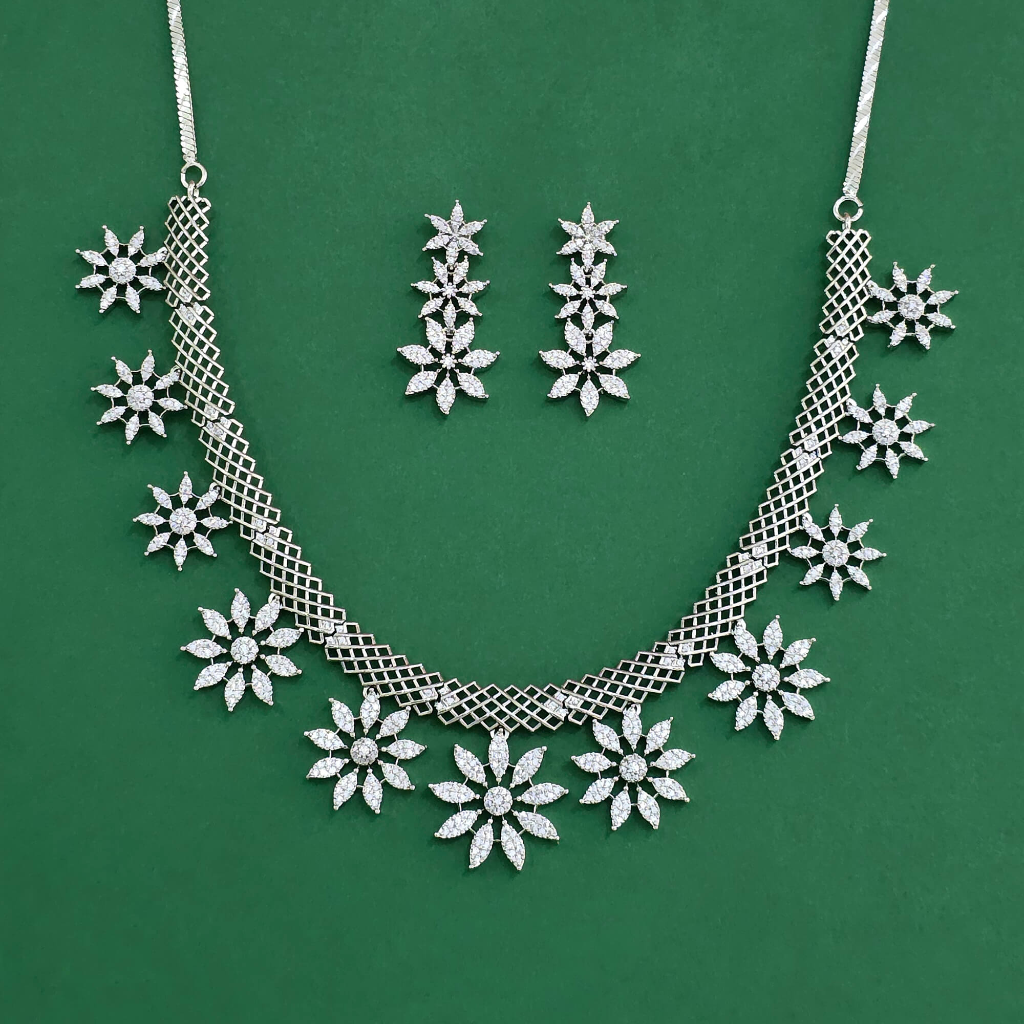 Kanhai Jewels offers an exclusive collection of finest quality crafted Fashion Jewellery in various colors. We make sure that our collection of Cubic Zirconia Classic Necklace With Rhodium Plating Mehndi Plating are beautiful, elegent & will surely galvanize you, because our products are unique, comfortable, fashion forward & very popular for the rich look. Base Metal of our product is Alloy, i.e Mixing of Copper & Brass. We pack all the products using quality packaging material to ensure safe and secure transportation.