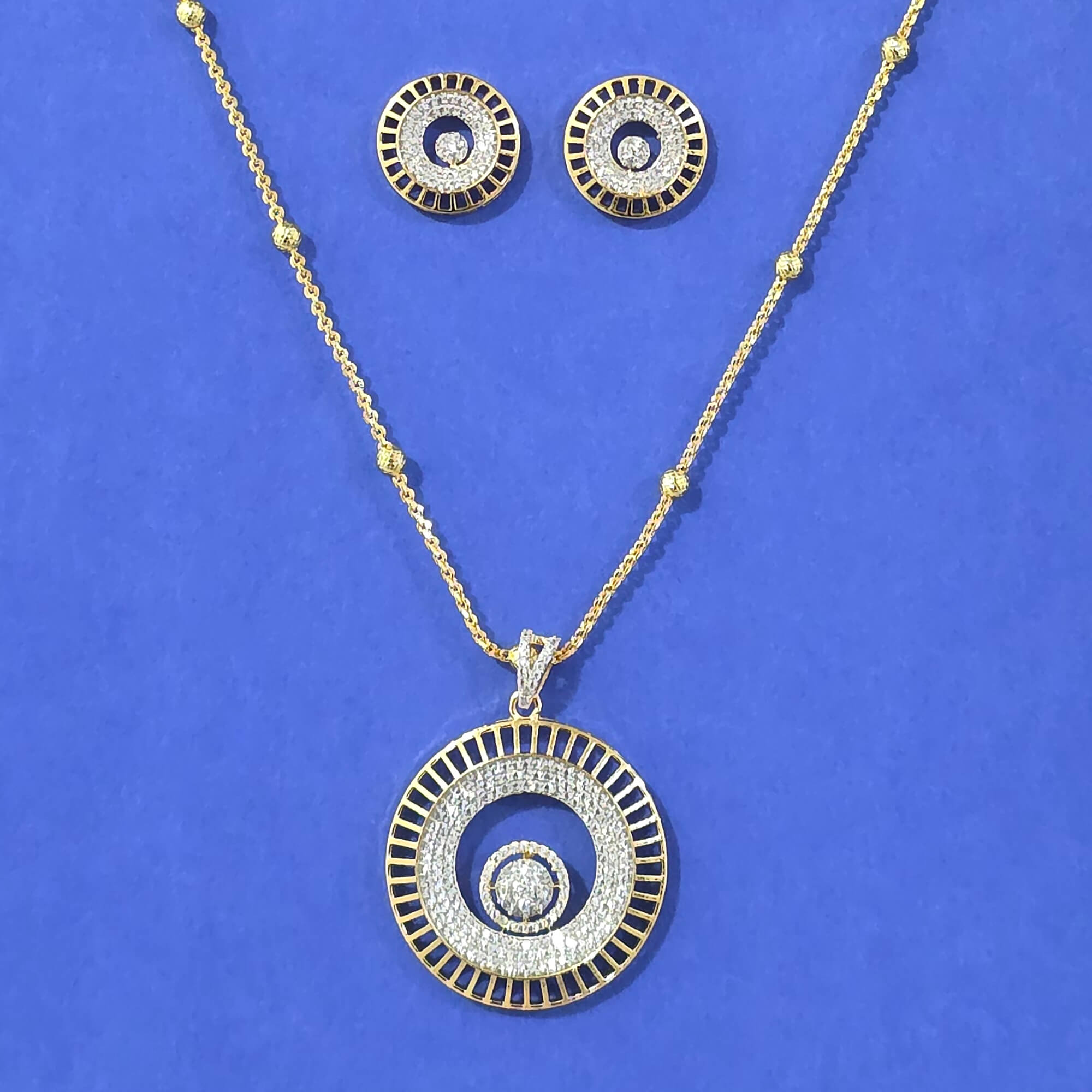 Home / American Diamond Pendant Set / cubic zirconia classic pendant set with 2 tone plating