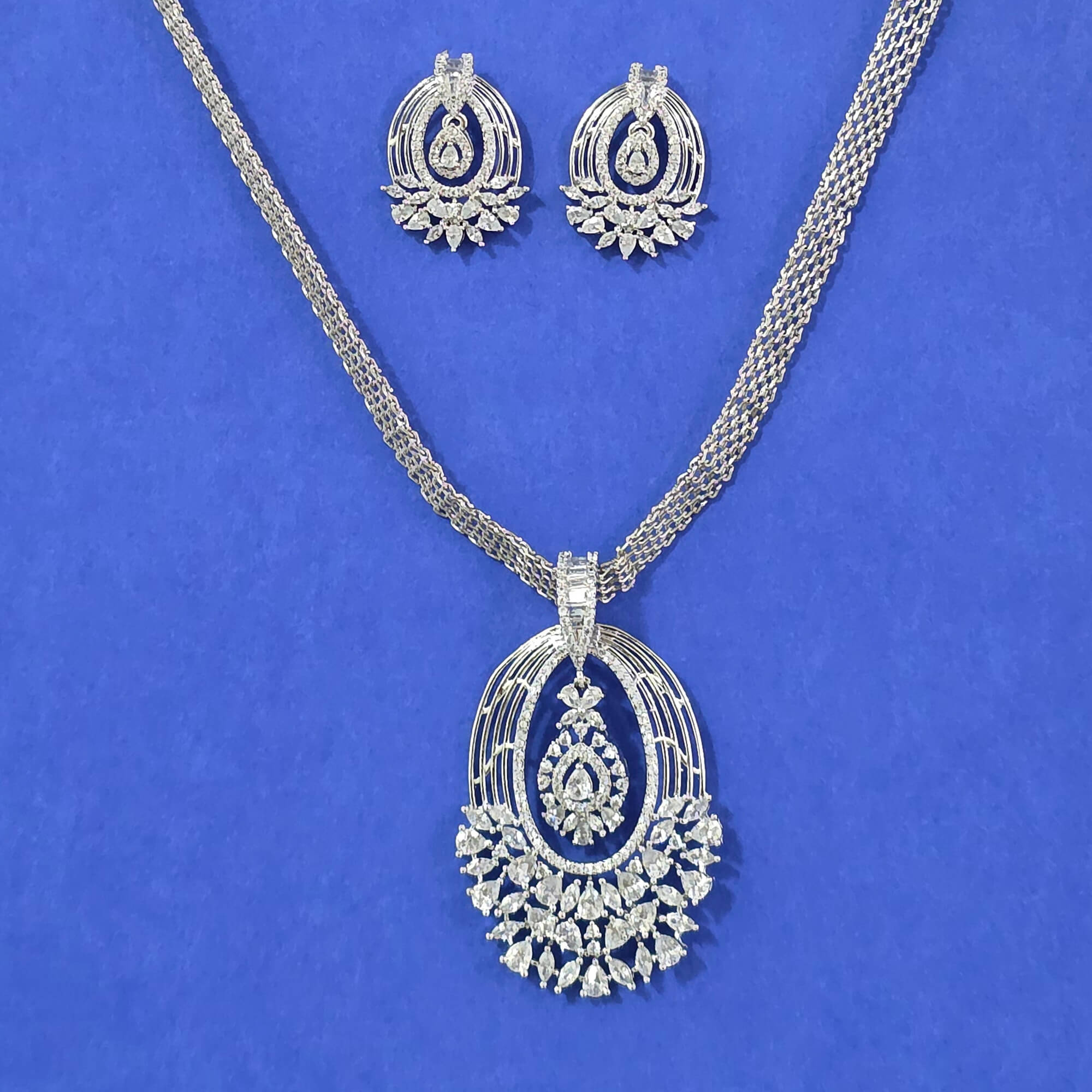 Kanhai Jewels offers an exclusive collection of finest quality crafted Fashion Jewellery in various colors. We make sure that our collection of Cubic Zirconia Classic Pendant Set With 2 Tone Rhodium Plating are beautiful, elegent & will surely galvanize you, because our products are unique, comfortable, fashion forward & very popular for the rich look. Base Metal of our product is Alloy, i.e Mixing of Copper & Brass. We pack all the products using quality packaging material to ensure safe and secure transportation.