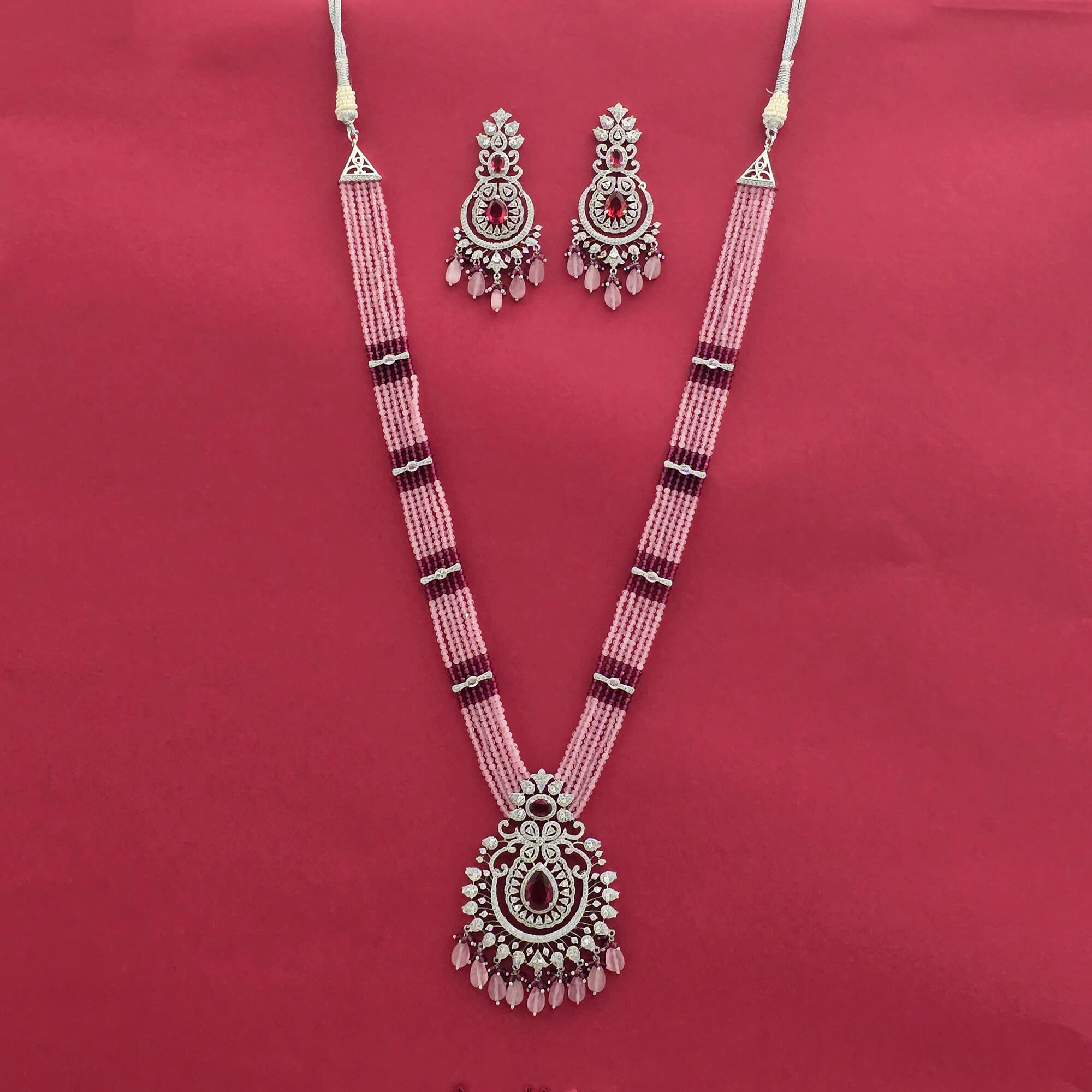 Home / American Diamond Pendant Set / cubic zirconia classic pendant set with rhodium plating