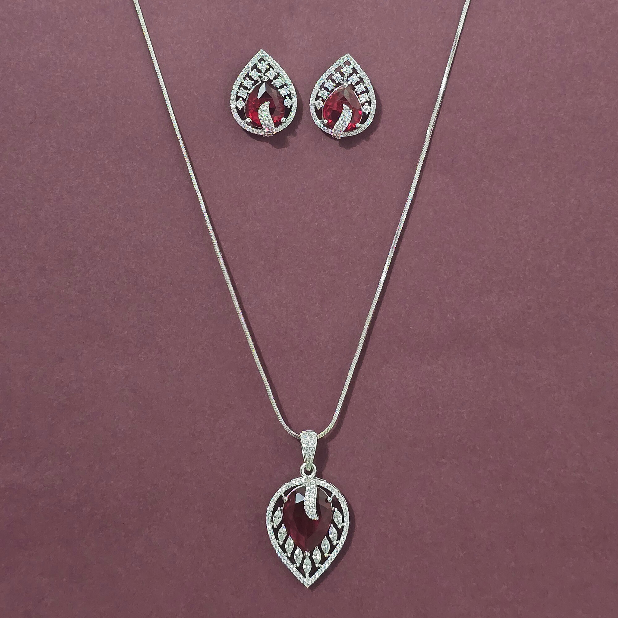 Home / American Diamond Pendant Set / cubic zirconia classic pendant set with rhodium plating