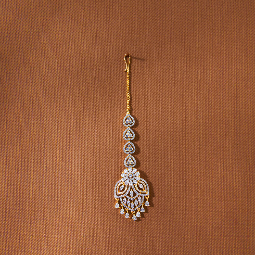 Kanhai Jewels offers an exclusive collection of finest quality crafted Fashion Jewellery in various colors. We make sure that our collection of Cubic Zirconia Classic Tikka With 2 Tone Rhodium Plating are beautiful, elegent & will surely galvanize you, because our products are unique, comfortable, fashion forward & very popular for the rich look. Base Metal of our product is Alloy, i.e Mixing of Copper & Brass. We pack all the products using quality packaging material to ensure safe and secure transportation.