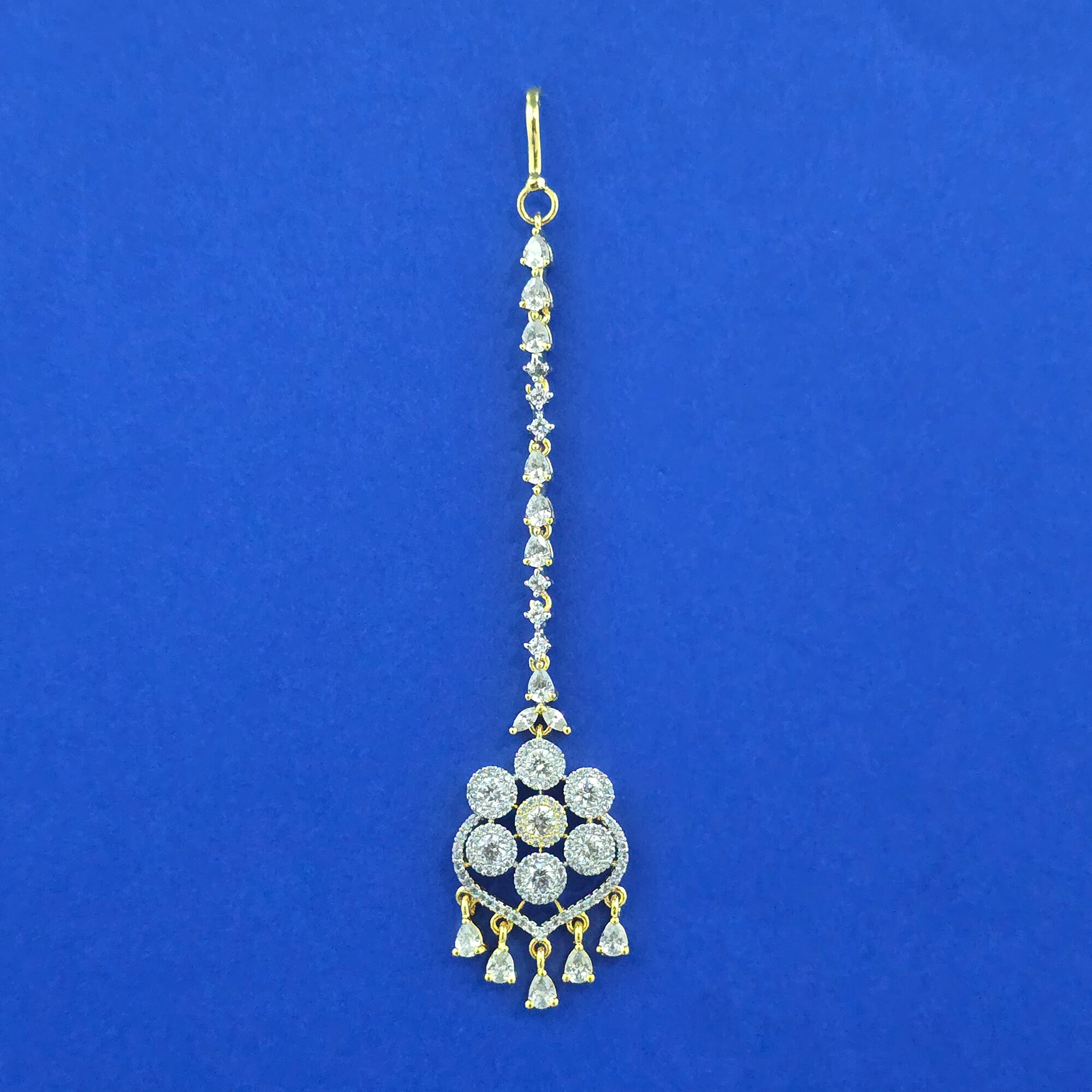 Kanhai Jewels offers an exclusive collection of finest quality crafted Fashion Jewellery in various colors. We make sure that our collection of Cubic Zirconia Classic Tikka With Mehndi 2 Tone Rhodium Plating are beautiful, elegent & will surely galvanize you, because our products are unique, comfortable, fashion forward & very popular for the rich look. Base Metal of our product is Alloy, i.e Mixing of Copper & Brass. We pack all the products using quality packaging material to ensure safe and secure transportation.