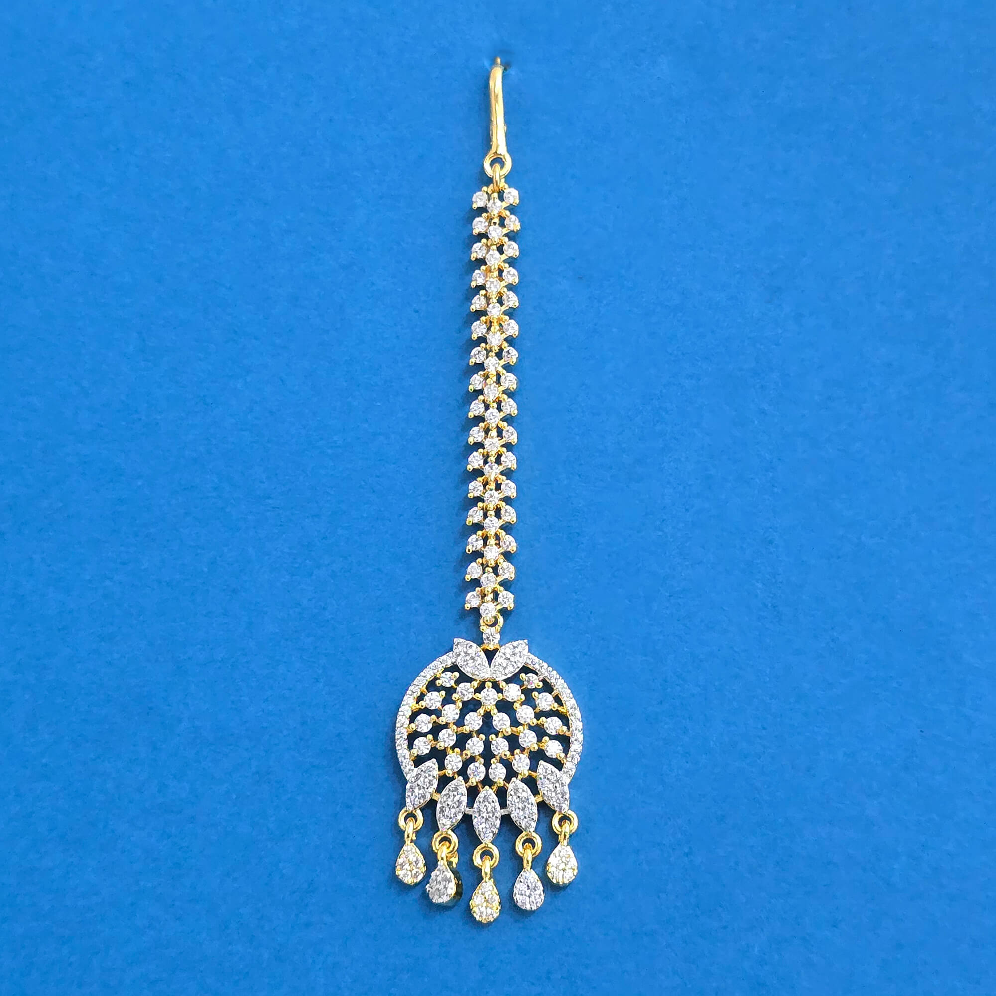 Home / American Diamond Tikka / cubic zirconia classic tikka with mehndi 2tone rhodium plating