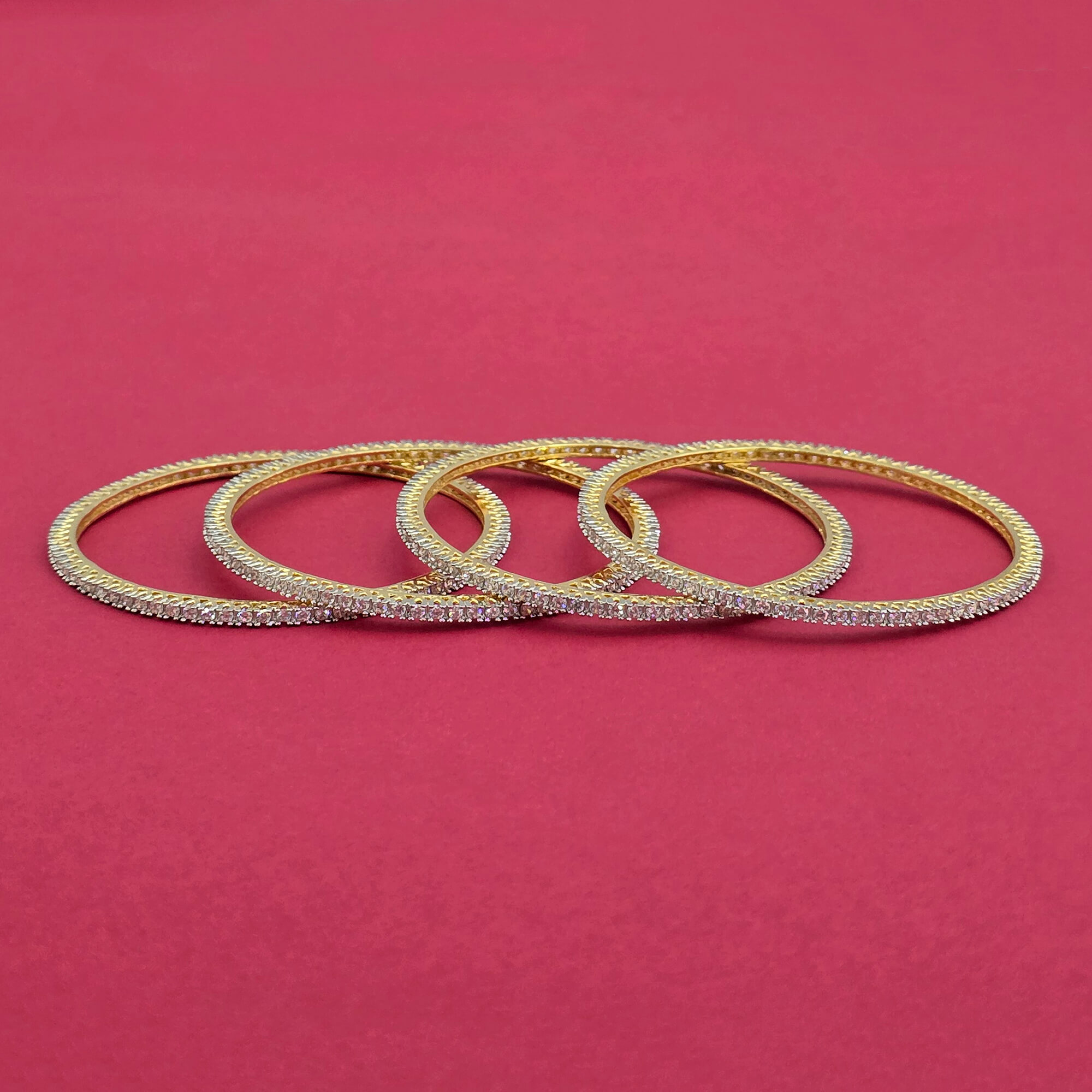 Kanhai Jewels offers an exclusive collection of finest quality crafted Fashion Jewellery in various colors. We make sure that our collection of Cubic Zirconia Delicate Bangles With 2 Tone Plating are beautiful, elegent & will surely galvanize you, because our products are unique, comfortable, fashion forward & very popular for the rich look. Base Metal of our product is Alloy, i.e Mixing of Copper & Brass. We pack all the products using quality packaging material to ensure safe and secure transportation.