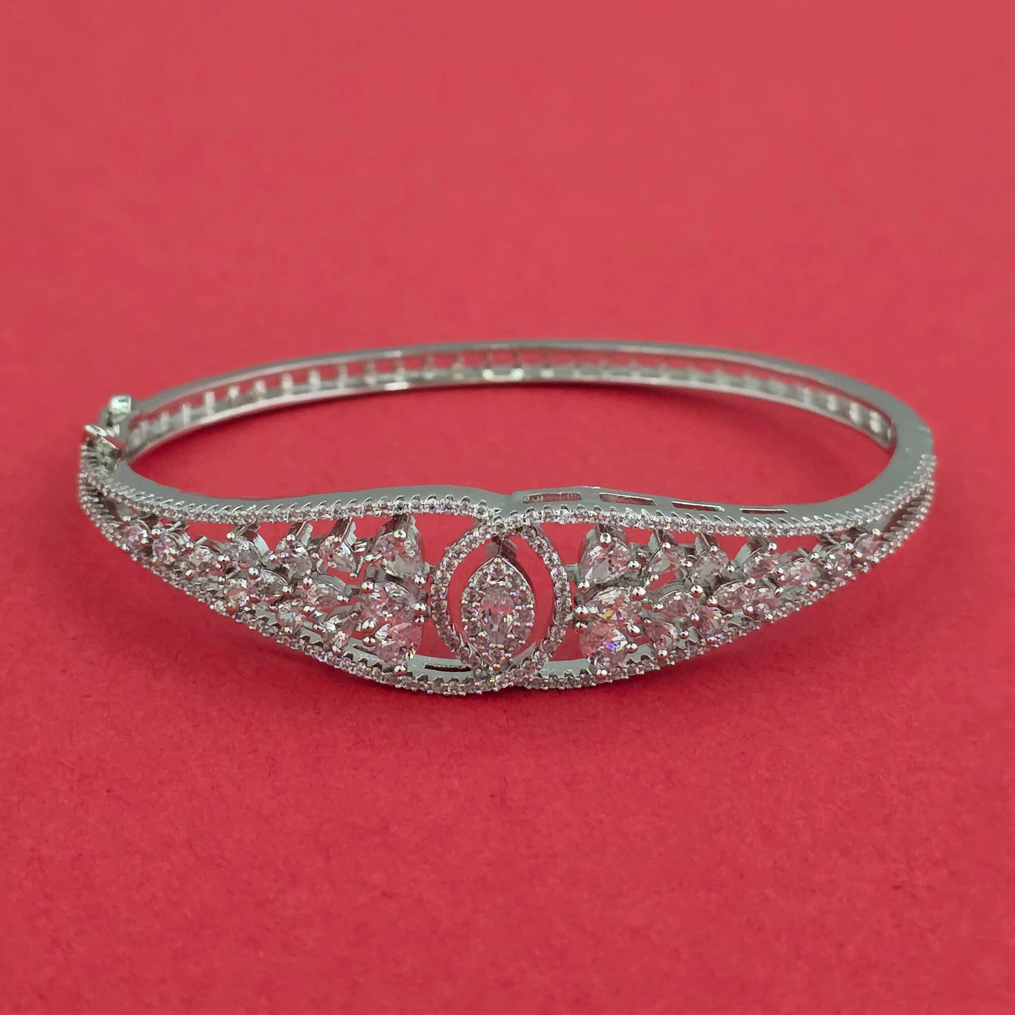Kanhai Jewels offers an exclusive collection of finest quality crafted Fashion Jewellery in various colors. We make sure that our collection of Cubic Zirconia Delicate Kada With Mehndi 2 Tone Rhodium Plating are beautiful, elegent & will surely galvanize you, because our products are unique, comfortable, fashion forward & very popular for the rich look. Base Metal of our product is Alloy, i.e Mixing of Copper & Brass. We pack all the products using quality packaging material to ensure safe and secure transportation.