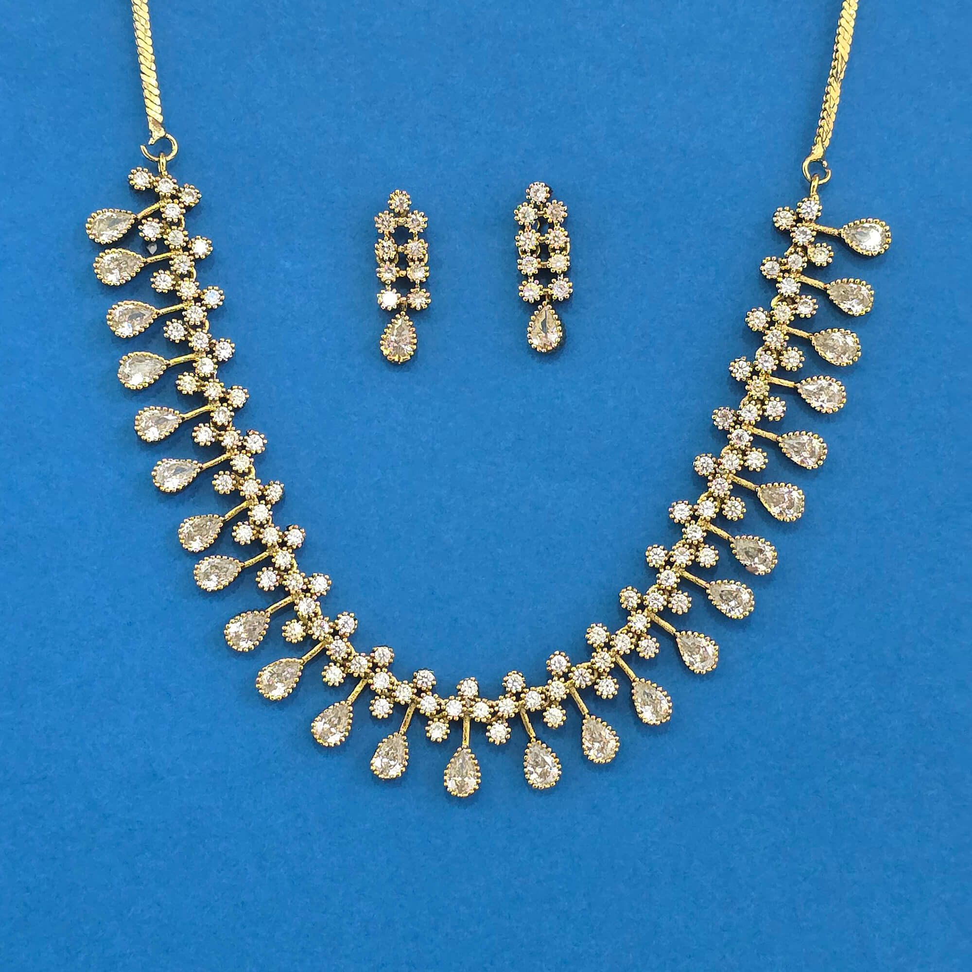 Kanhai Jewels offers an exclusive collection of finest quality crafted Fashion Jewellery in various colors. We make sure that our collection of Cubic Zirconia Delicate Necklace Set With Mehndi Plating Rhodium Plating are beautiful, elegent & will surely galvanize you, because our products are unique, comfortable, fashion forward & very popular for the rich look. Base Metal of our product is Alloy, i.e Mixing of Copper & Brass. We pack all the products using quality packaging material to ensure safe and secure transportation.