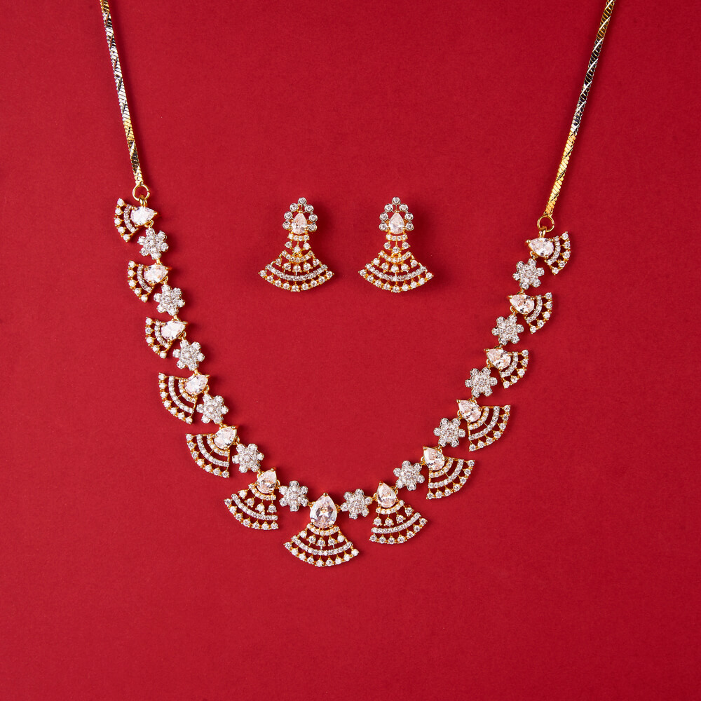 Kanhai Jewels offers an exclusive collection of finest quality crafted Fashion Jewellery in various colors. We make sure that our collection of Cubic Zirconia Delicate Necklace With 2 Tone Plating are beautiful, elegent & will surely galvanize you, because our products are unique, comfortable, fashion forward & very popular for the rich look. Base Metal of our product is Alloy, i.e Mixing of Copper & Brass. We pack all the products using quality packaging material to ensure safe and secure transportation.
