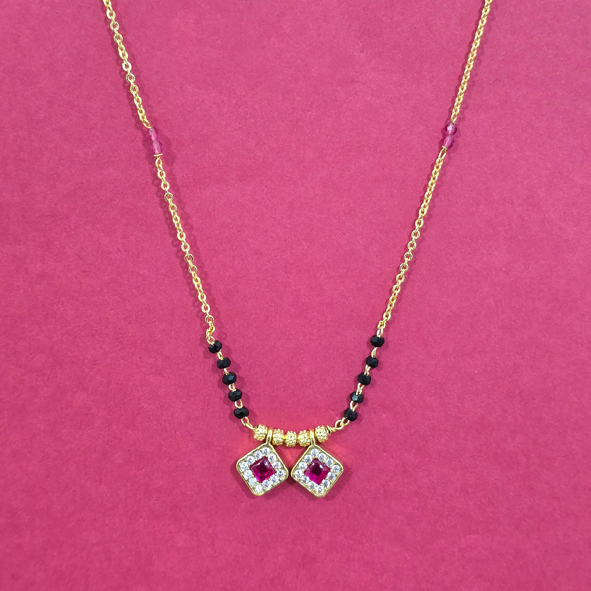 Kanhai Jewels offers an exclusive collection of finest quality crafted Fashion Jewellery in various colors. We make sure that our collection of Cubic Zirconia Dokiya Mangalsutra With Gold Plating are beautiful, elegent & will surely galvanize you, because our products are unique, comfortable, fashion forward & very popular for the rich look. Base Metal of our product is Alloy, i.e Mixing of Copper & Brass. We pack all the products using quality packaging material to ensure safe and secure transportation.