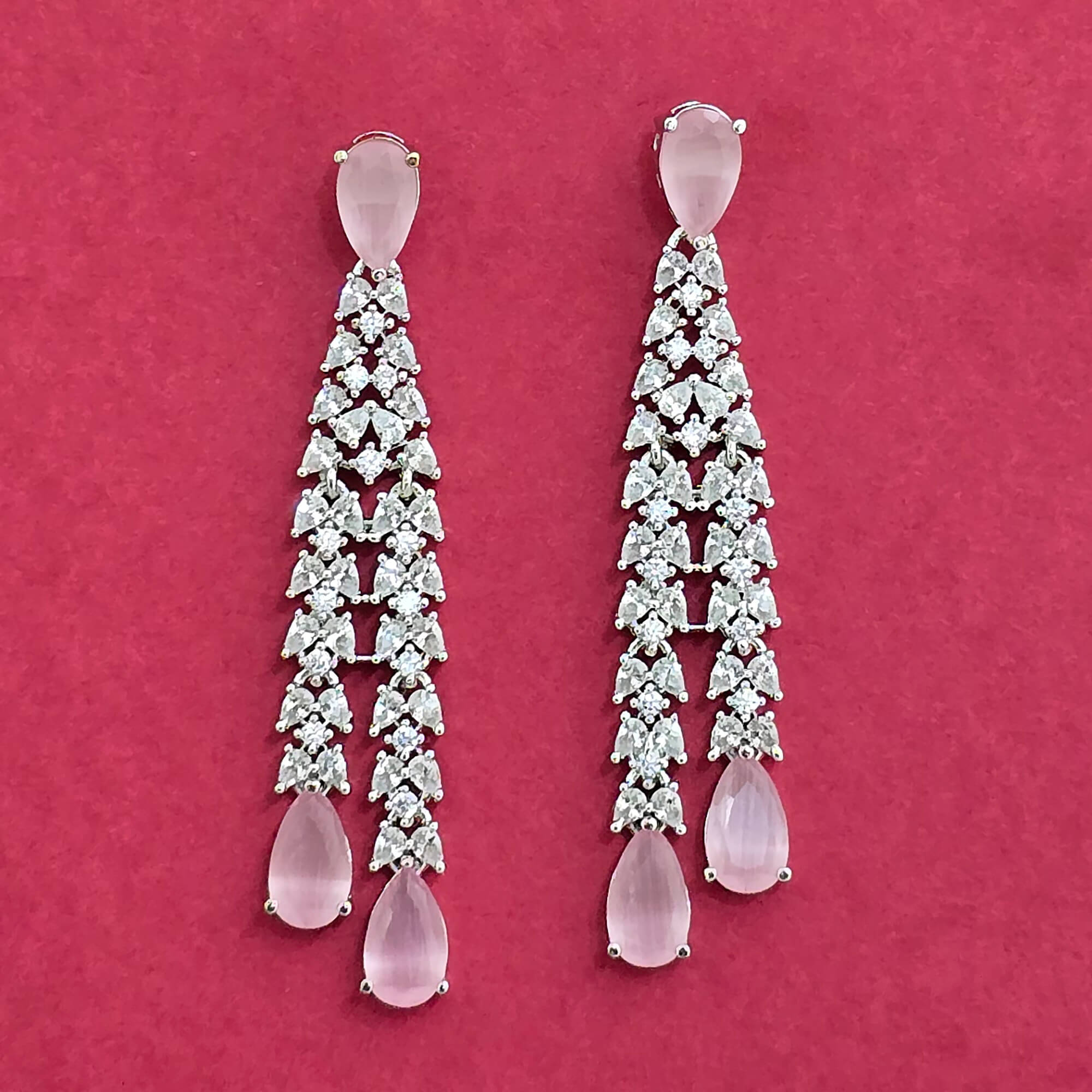 Home / American Diamond Earring / cubic zirconia long earring with rhodium plating