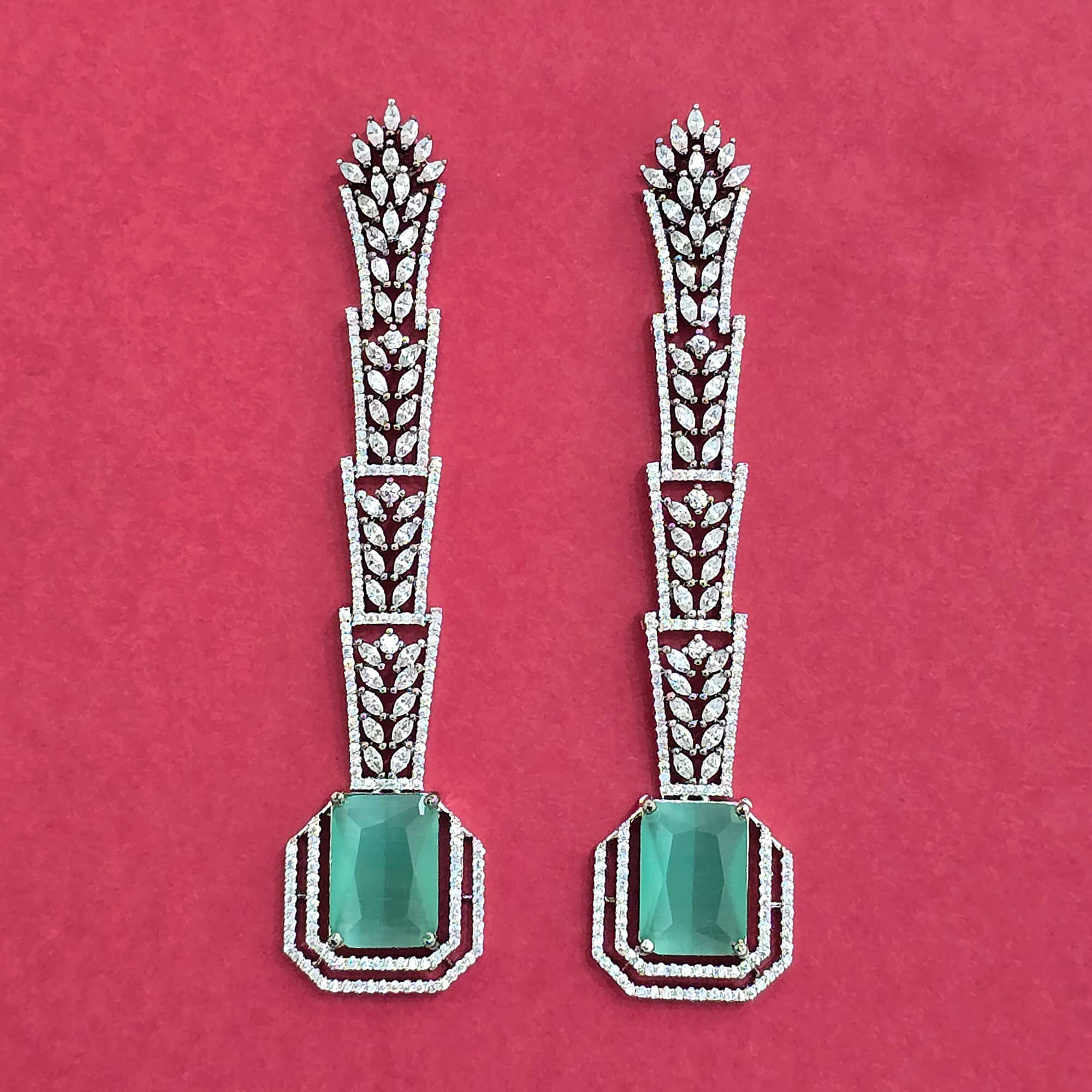 Home / American Diamond Earring / cubic zirconia long earring with rhodium plating