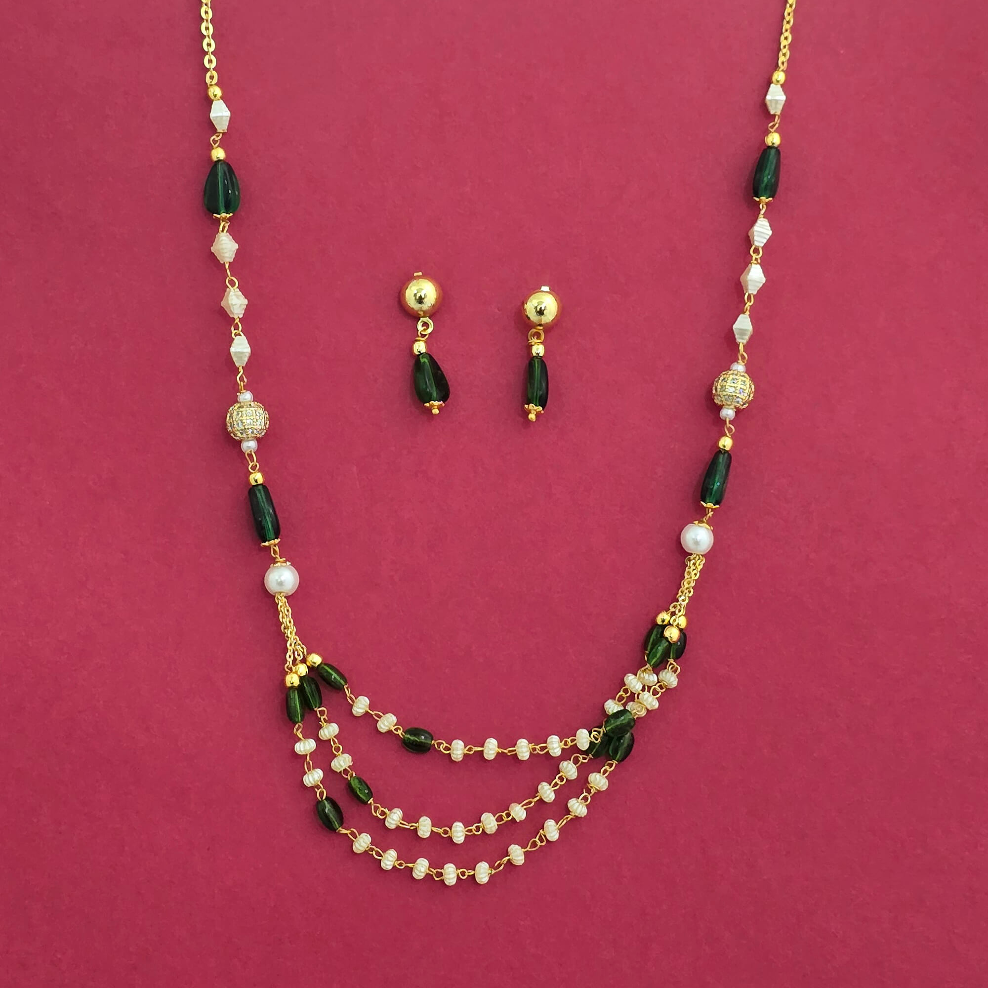 Kanhai Jewels offers an exclusive collection of finest quality crafted Fashion Jewellery in various colors. We make sure that our collection of Cubic Zirconia Mala Necklace With Gold Plating are beautiful, elegent & will surely galvanize you, because our products are unique, comfortable, fashion forward & very popular for the rich look. Base Metal of our product is Alloy, i.e Mixing of Copper & Brass. We pack all the products using quality packaging material to ensure safe and secure transportation.