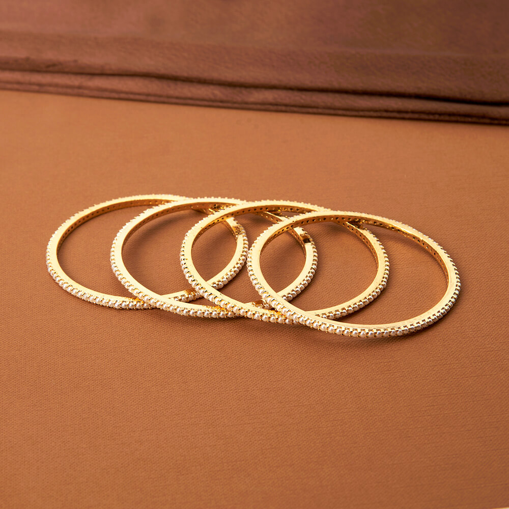 Kanhai Jewels offers an exclusive collection of finest quality crafted Fashion Jewellery in various colors. We make sure that our collection of Cubic Zirconia Moti Bangles With Gold Plating are beautiful, elegent & will surely galvanize you, because our products are unique, comfortable, fashion forward & very popular for the rich look. Base Metal of our product is Alloy, i.e Mixing of Copper & Brass. We pack all the products using quality packaging material to ensure safe and secure transportation.