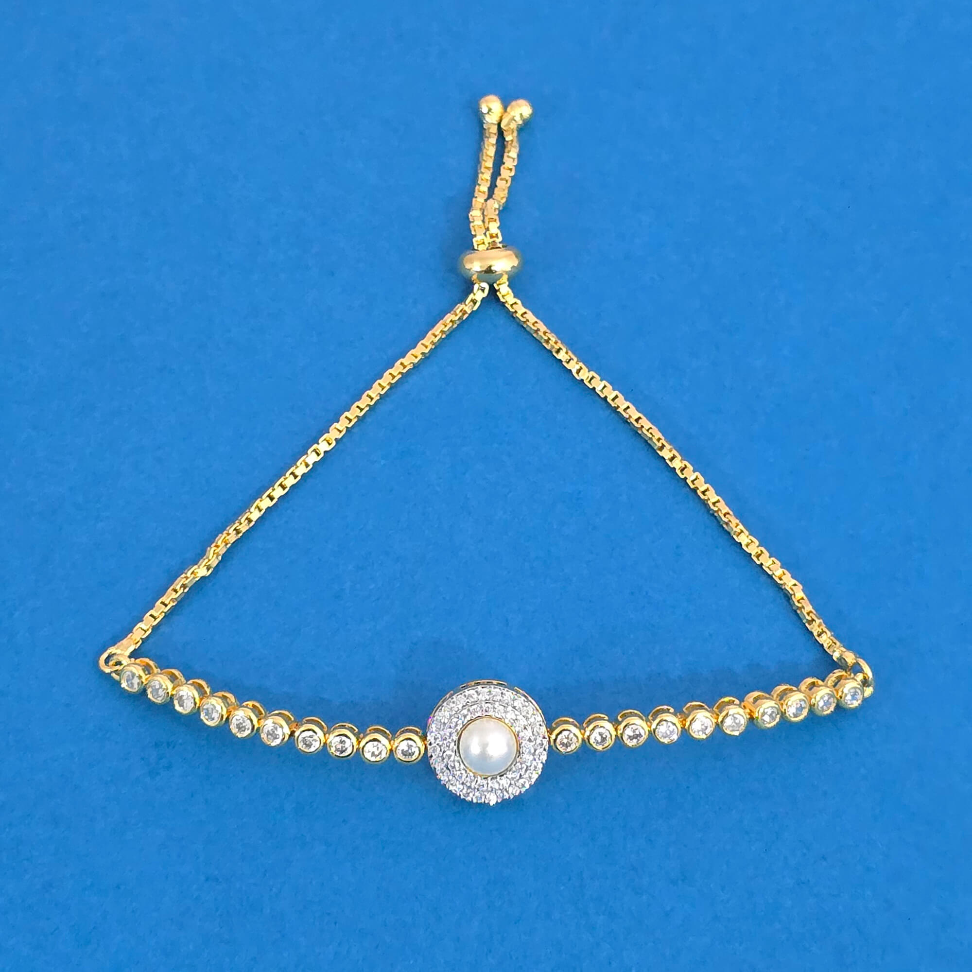 Kanhai Jewels offers an exclusive collection of finest quality crafted Fashion Jewellery in various colors. We make sure that our collection of Cubic Zirconia Moti Bracelet With Rhodium 2 Tone Plating are beautiful, elegent & will surely galvanize you, because our products are unique, comfortable, fashion forward & very popular for the rich look. Base Metal of our product is Alloy, i.e Mixing of Copper & Brass. We pack all the products using quality packaging material to ensure safe and secure transportation.