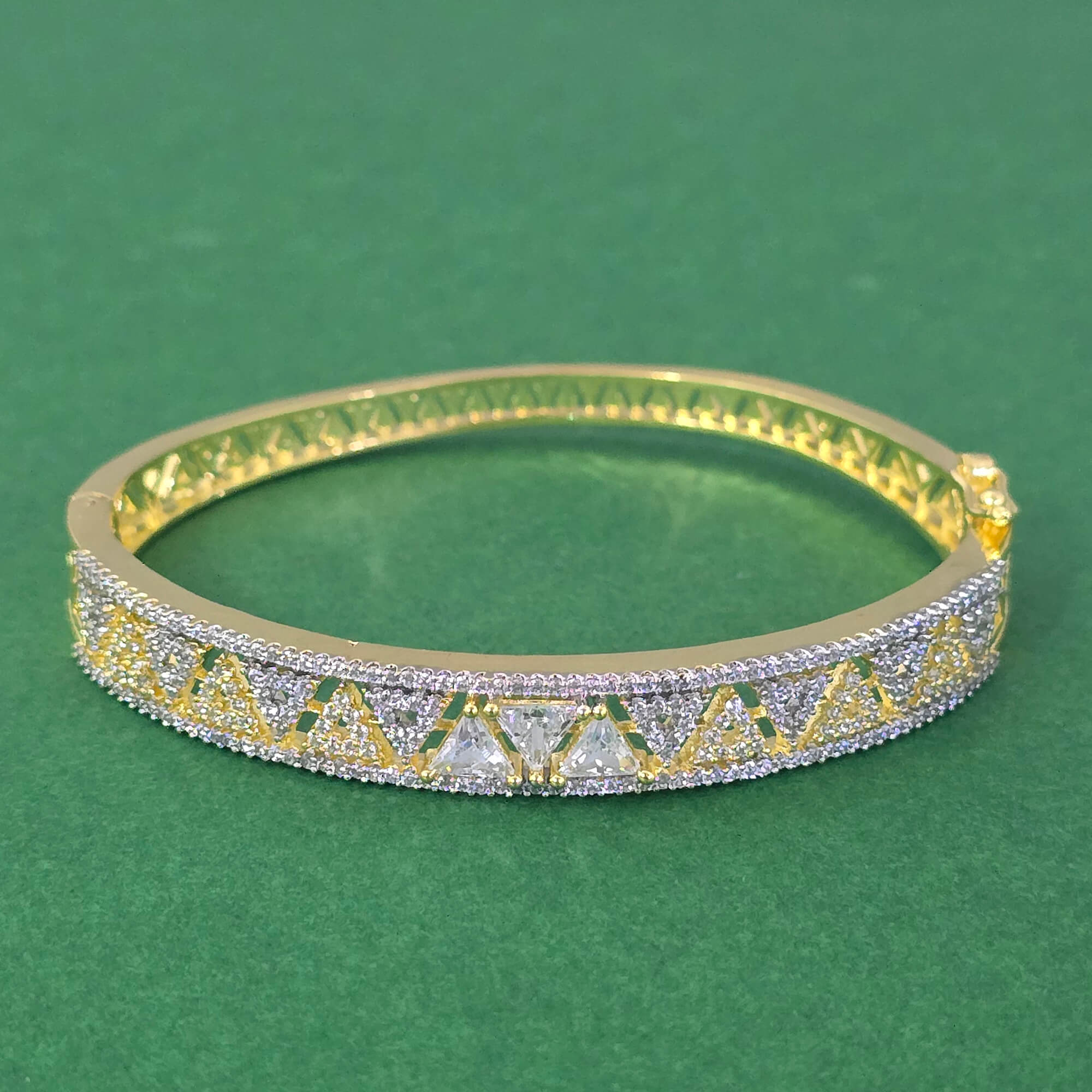 Kanhai Jewels offers an exclusive collection of finest quality crafted Fashion Jewellery in various colors. We make sure that our collection of Cubic Zirconia Openable Kada With 2 Tone Plating are beautiful, elegent & will surely galvanize you, because our products are unique, comfortable, fashion forward & very popular for the rich look. Base Metal of our product is Alloy, i.e Mixing of Copper & Brass. We pack all the products using quality packaging material to ensure safe and secure transportation.