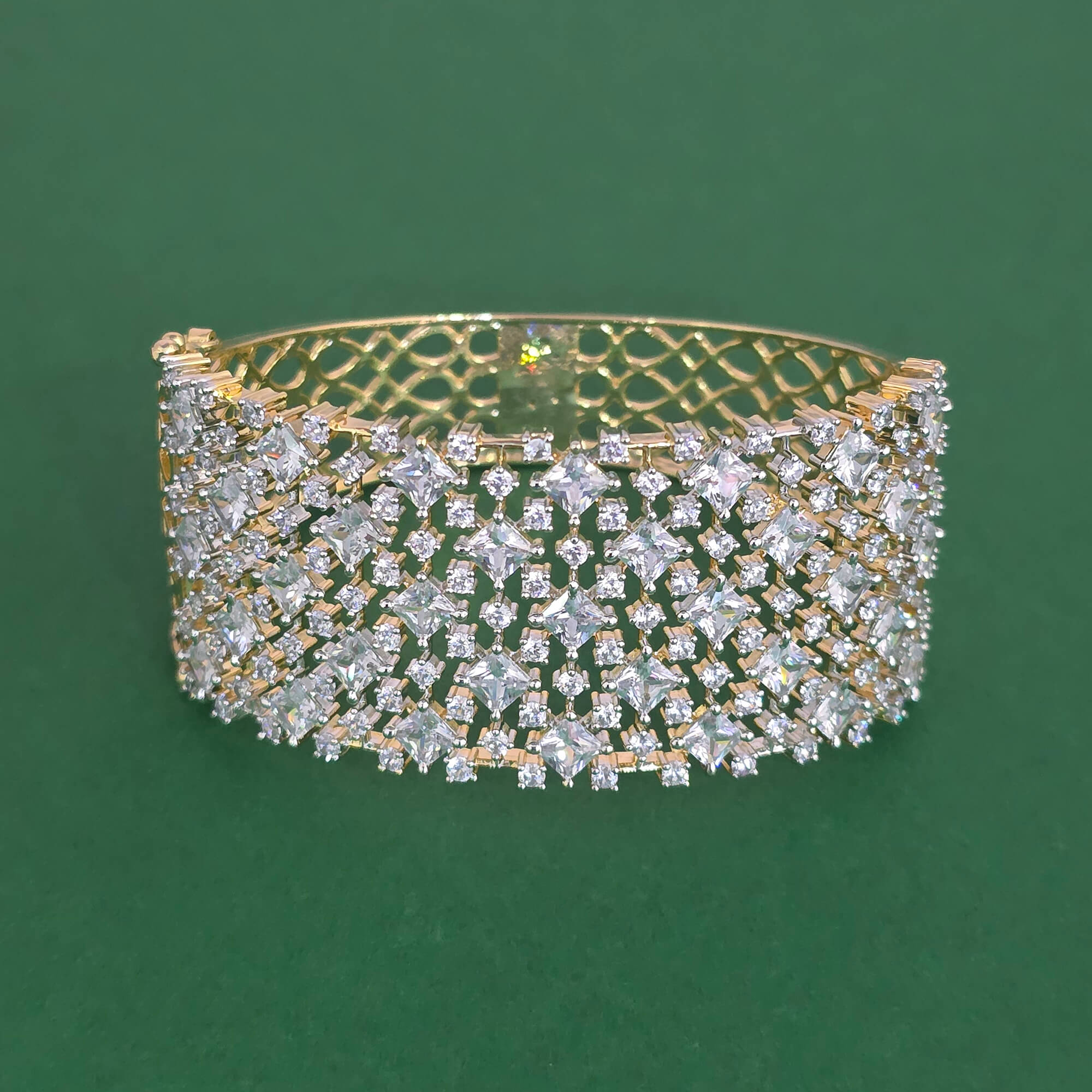 Kanhai Jewels offers an exclusive collection of finest quality crafted Fashion Jewellery in various colors. We make sure that our collection of Cubic Zirconia Openable Kada With 2 Tone Plating are beautiful, elegent & will surely galvanize you, because our products are unique, comfortable, fashion forward & very popular for the rich look. Base Metal of our product is Alloy, i.e Mixing of Copper & Brass. We pack all the products using quality packaging material to ensure safe and secure transportation.