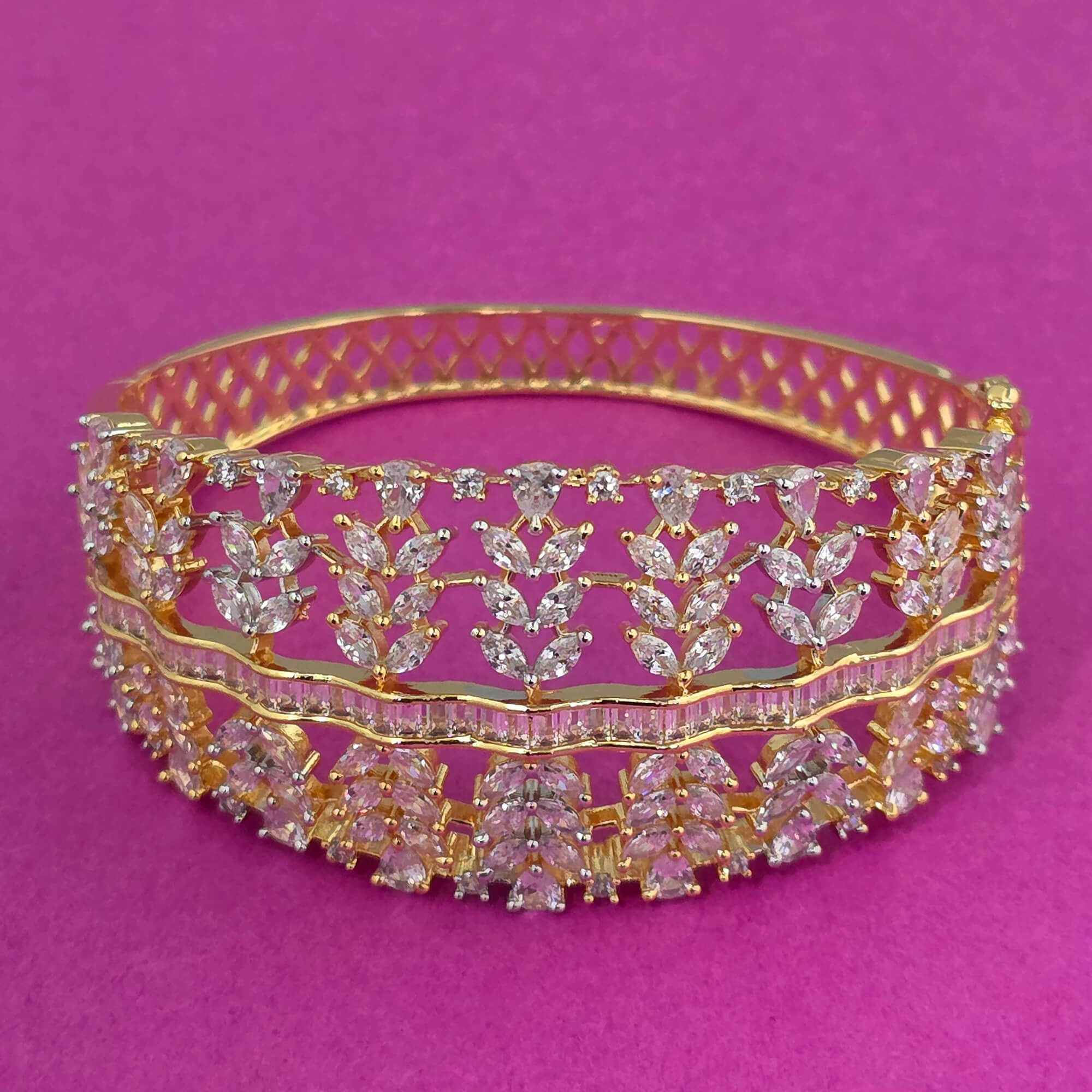 Home / American Diamond Kada / cubic zirconia openable kada with 2 tone rhodium plating