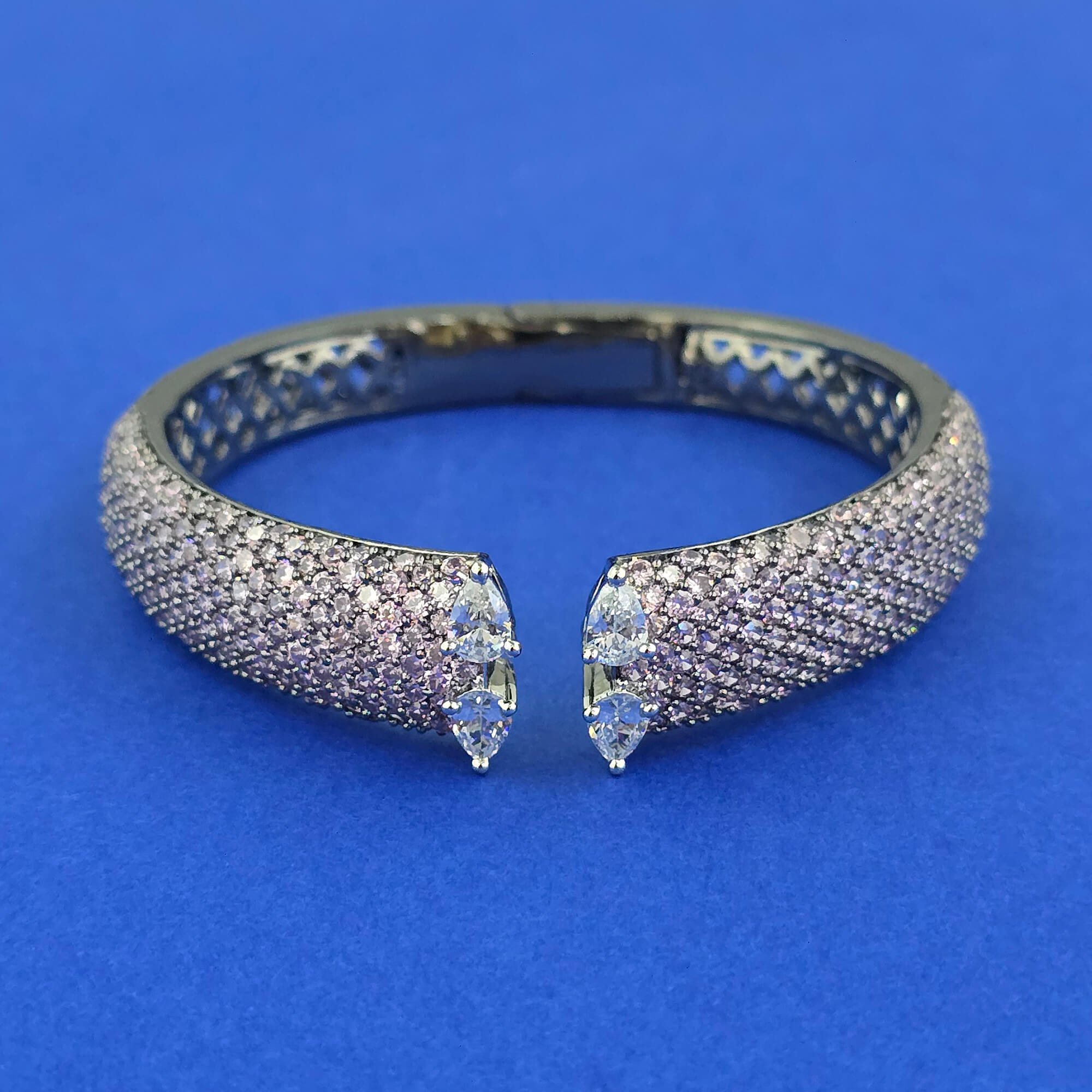 Kanhai Jewels offers an exclusive collection of finest quality crafted Fashion Jewellery in various colors. We make sure that our collection of Cubic Zirconia Openable Kada With Black Plating are beautiful, elegent & will surely galvanize you, because our products are unique, comfortable, fashion forward & very popular for the rich look. Base Metal of our product is Alloy, i.e Mixing of Copper & Brass. We pack all the products using quality packaging material to ensure safe and secure transportation.