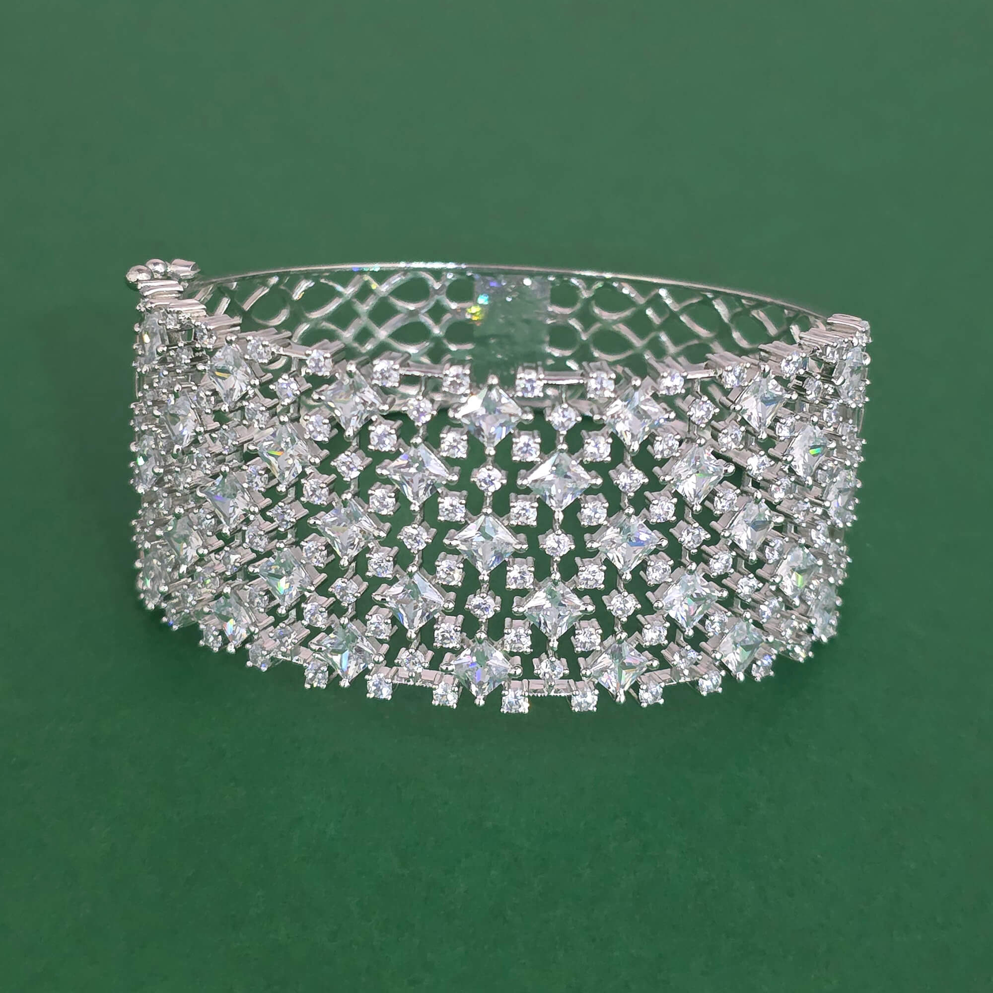 Kanhai Jewels offers an exclusive collection of finest quality crafted Fashion Jewellery in various colors. We make sure that our collection of Cubic Zirconia Openable Kada With Mehndi Rhodium Plating are beautiful, elegent & will surely galvanize you, because our products are unique, comfortable, fashion forward & very popular for the rich look. Base Metal of our product is Alloy, i.e Mixing of Copper & Brass. We pack all the products using quality packaging material to ensure safe and secure transportation.