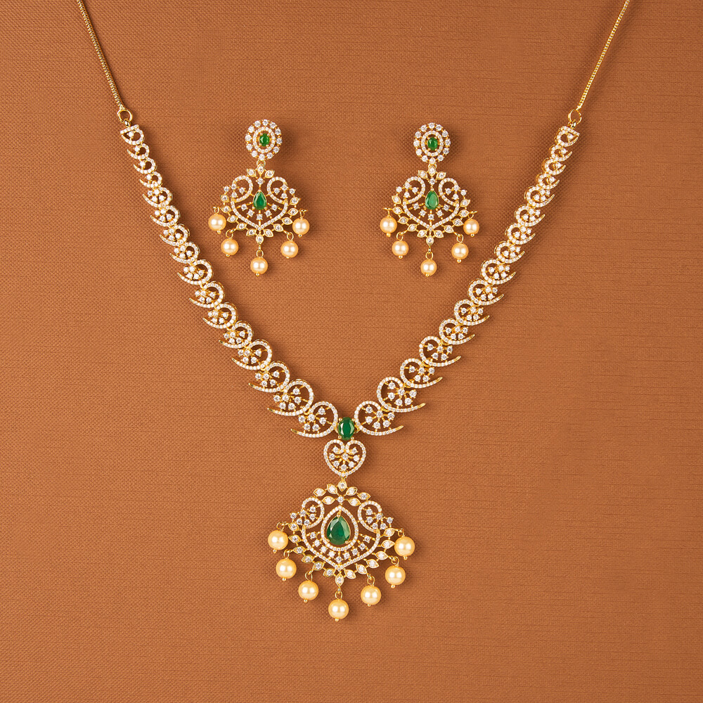 Kanhai Jewels offers an exclusive collection of finest quality crafted Fashion Jewellery in various colors. We make sure that our collection of Cubic Zirconia South Indian Necklace Set With Gold Plating are beautiful, elegent & will surely galvanize you, because our products are unique, comfortable, fashion forward & very popular for the rich look. Base Metal of our product is Alloy, i.e Mixing of Copper & Brass. We pack all the products using quality packaging material to ensure safe and secure transportation.