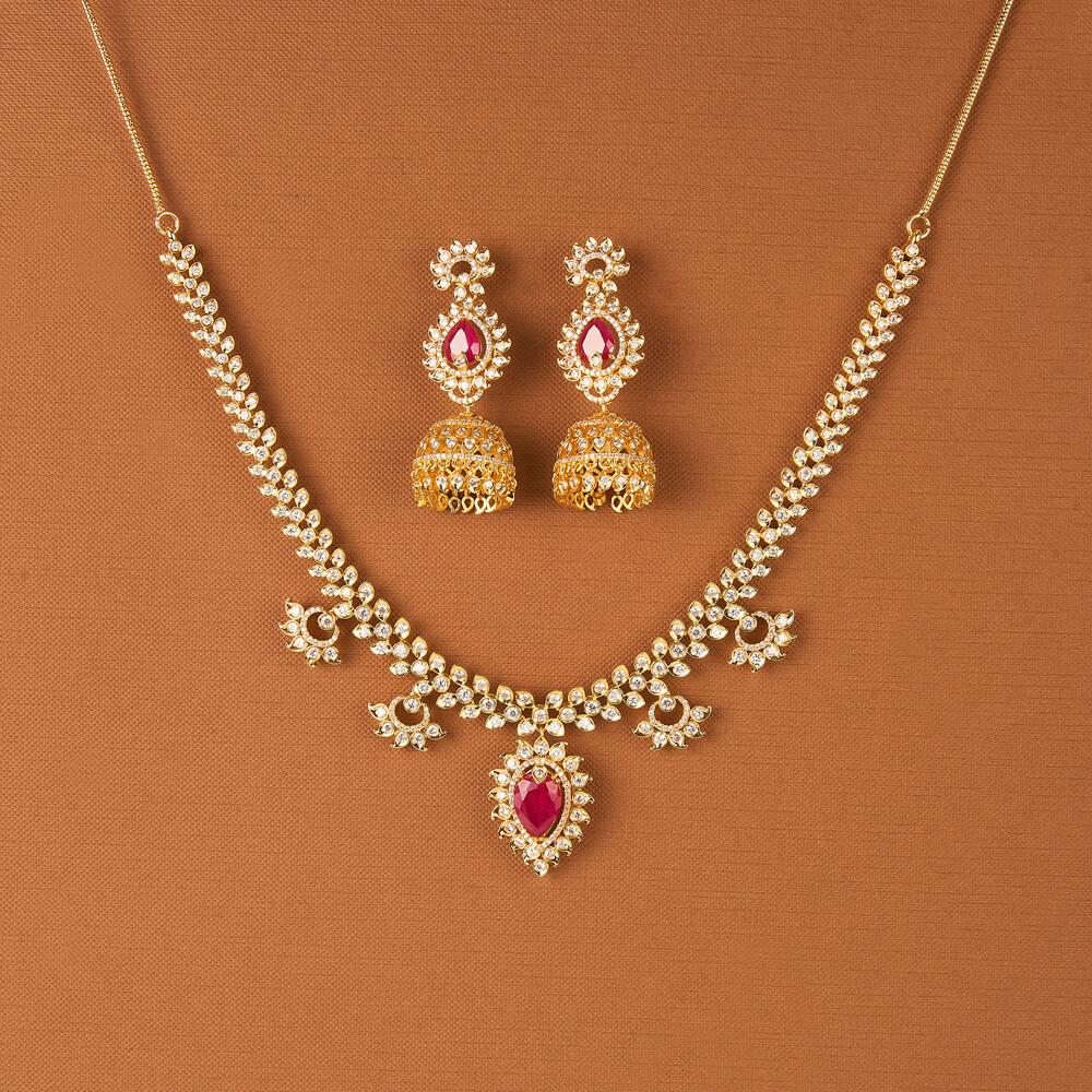 Kanhai Jewels offers an exclusive collection of finest quality crafted Fashion Jewellery in various colors. We make sure that our collection of Cubic Zirconia South Indian Necklace Set With Gold Plating are beautiful, elegent & will surely galvanize you, because our products are unique, comfortable, fashion forward & very popular for the rich look. Base Metal of our product is Alloy, i.e Mixing of Copper & Brass. We pack all the products using quality packaging material to ensure safe and secure transportation.