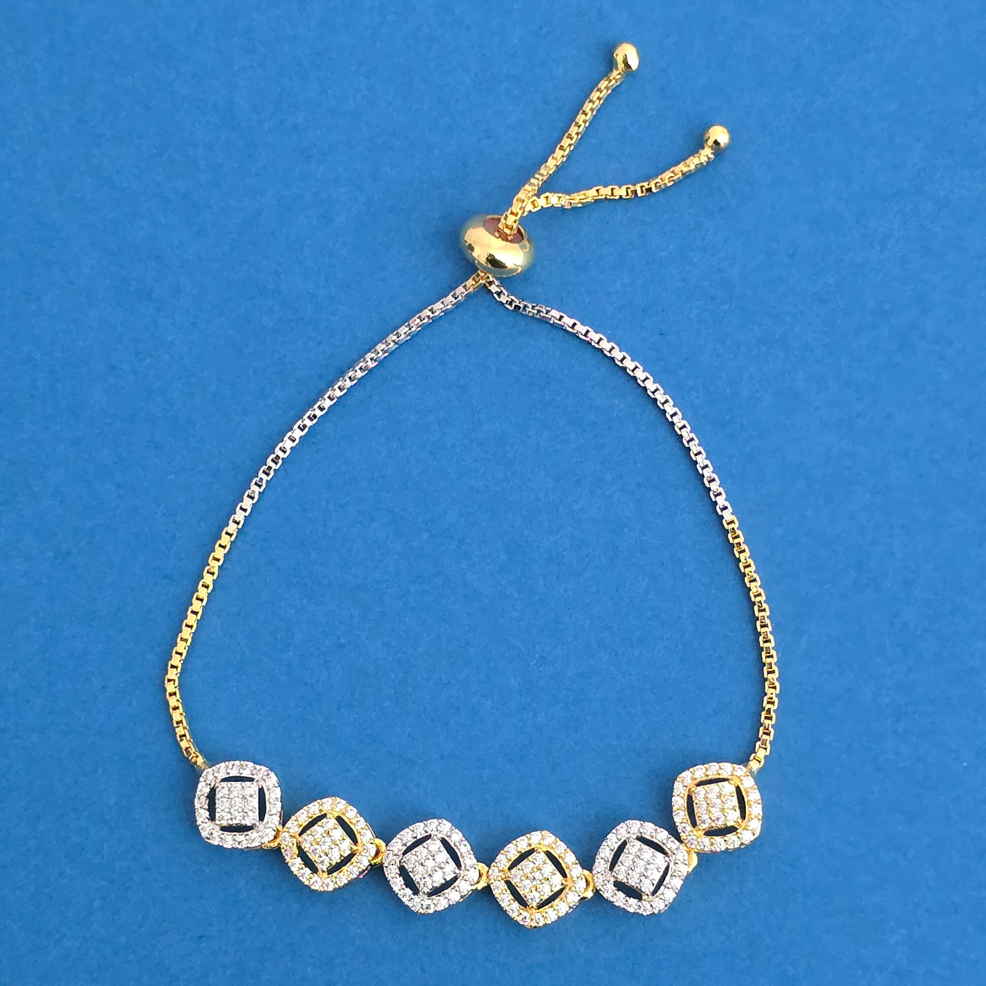Kanhai Jewels offers an exclusive collection of finest quality crafted Fashion Jewellery in various colors. We make sure that our collection of Cz Adjustable Bracelet With 2 Tone Plating are beautiful, elegent & will surely galvanize you, because our products are unique, comfortable, fashion forward & very popular for the rich look. Base Metal of our product is Alloy, i.e Mixing of Copper & Brass. We pack all the products using quality packaging material to ensure safe and secure transportation.