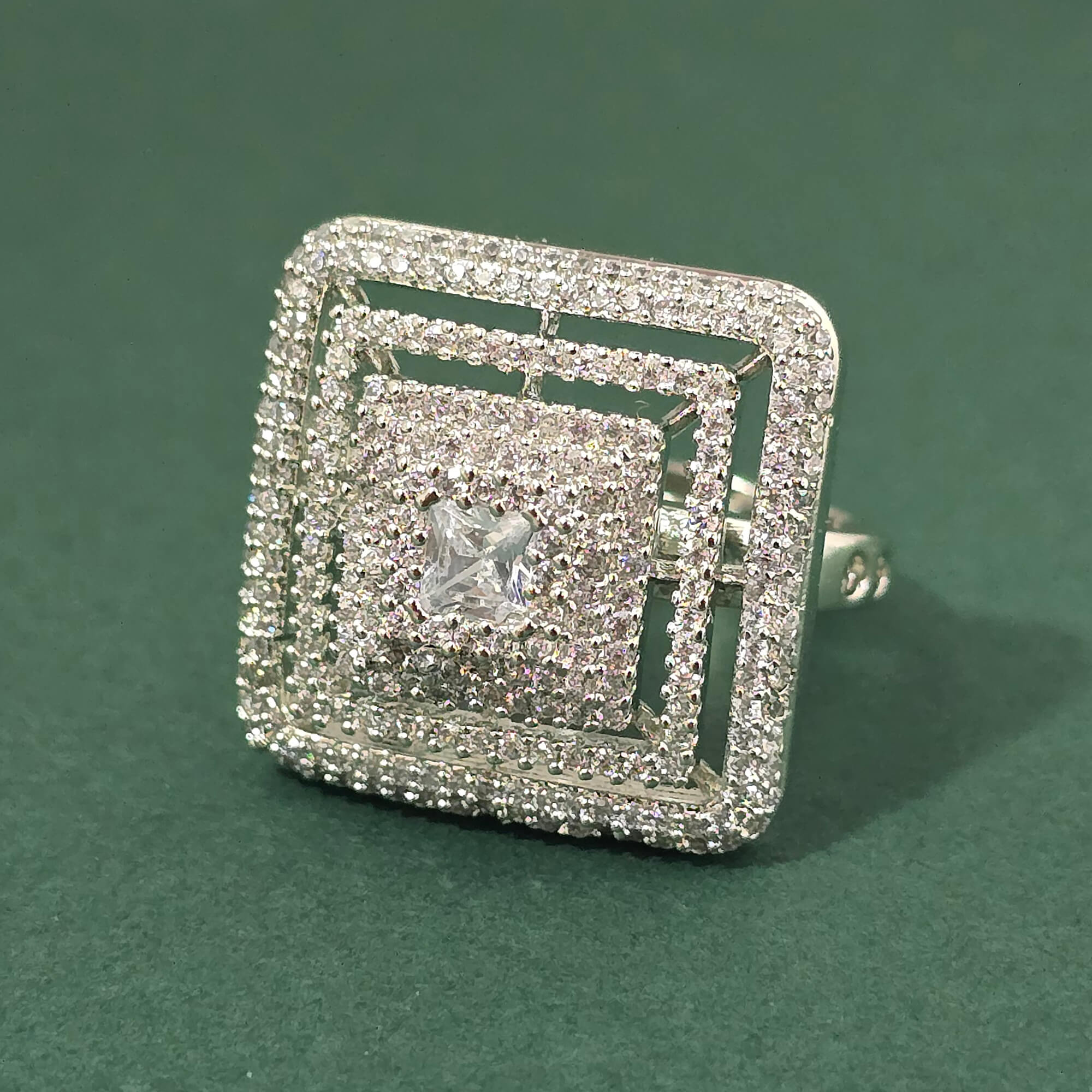 Home / American Diamond Finger Ring / cz adjustable ring with 2 tone rhodium plating