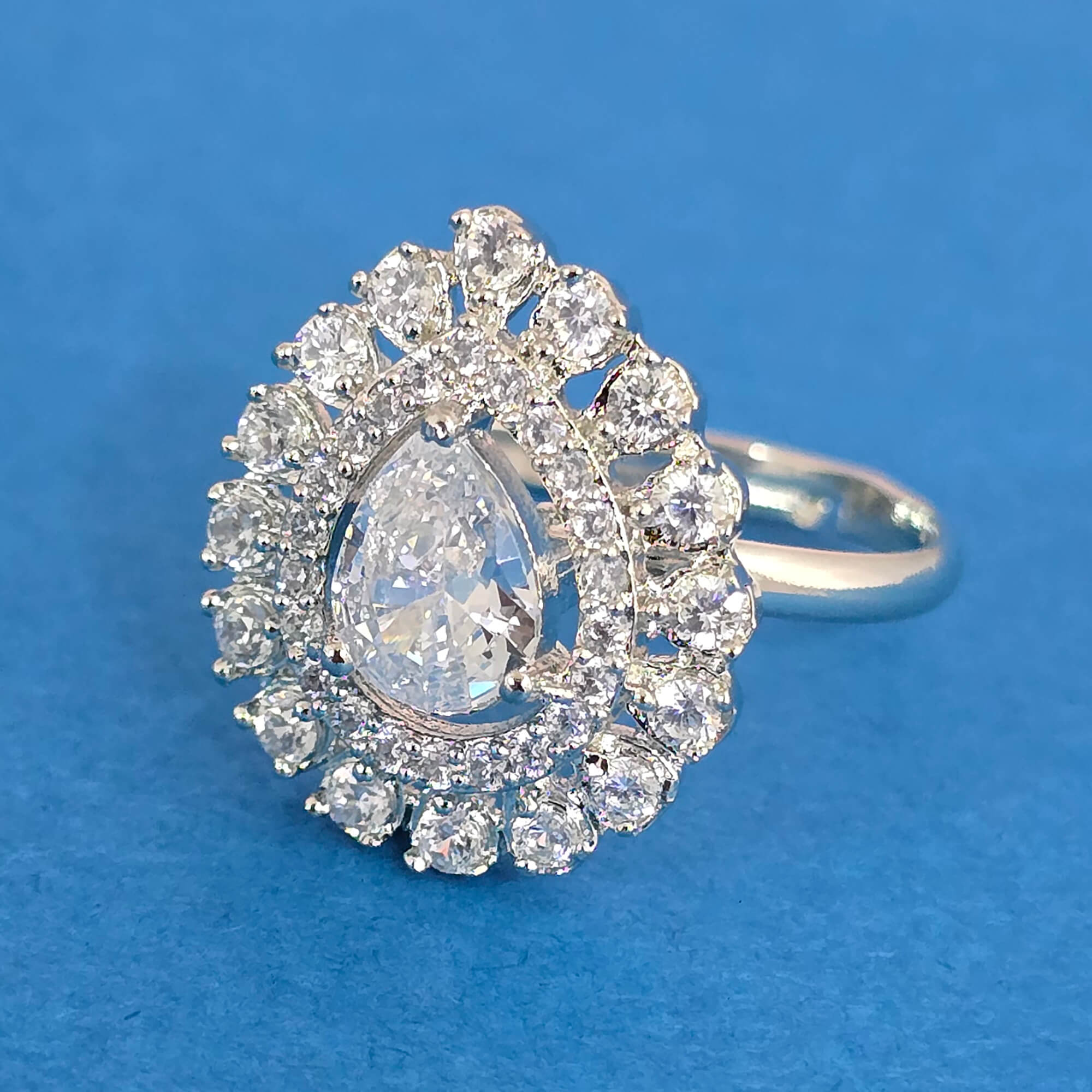 Home / American Diamond Finger Ring / cz adjustable ring with rhodium plating
