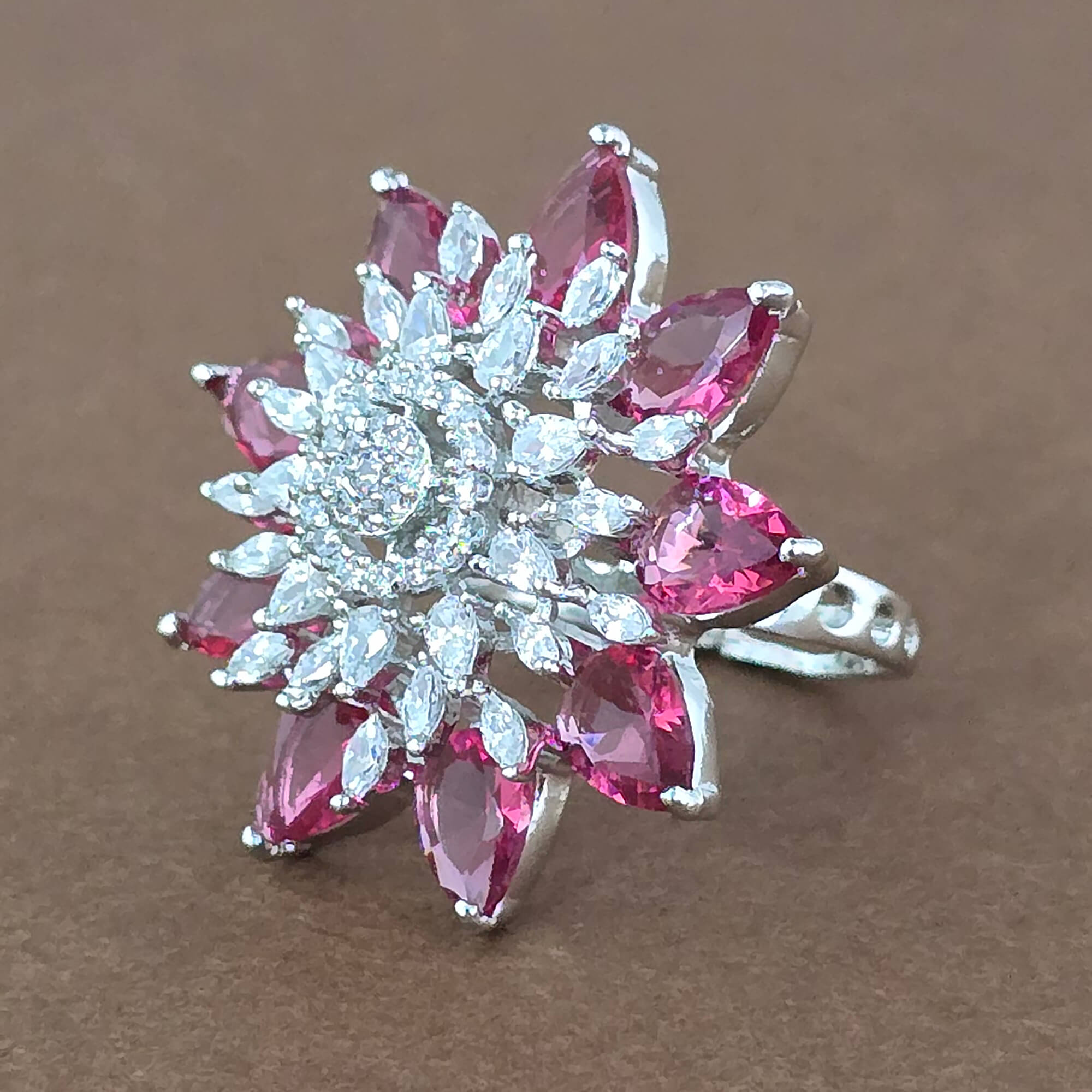 Home / American Diamond Finger Ring / cz adjustable ring with rhodium plating