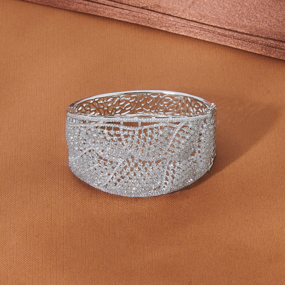 Kanhai Jewels offers an exclusive collection of finest quality crafted Fashion Jewellery in various colors. We make sure that our collection of Cz Broad Kada With Rhodium 2 Tone plating are beautiful, elegent & will surely galvanize you, because our products are unique, comfortable, fashion forward & very popular for the rich look. Base Metal of our product is Alloy, i.e Mixing of Copper & Brass. We pack all the products using quality packaging material to ensure safe and secure transportation.