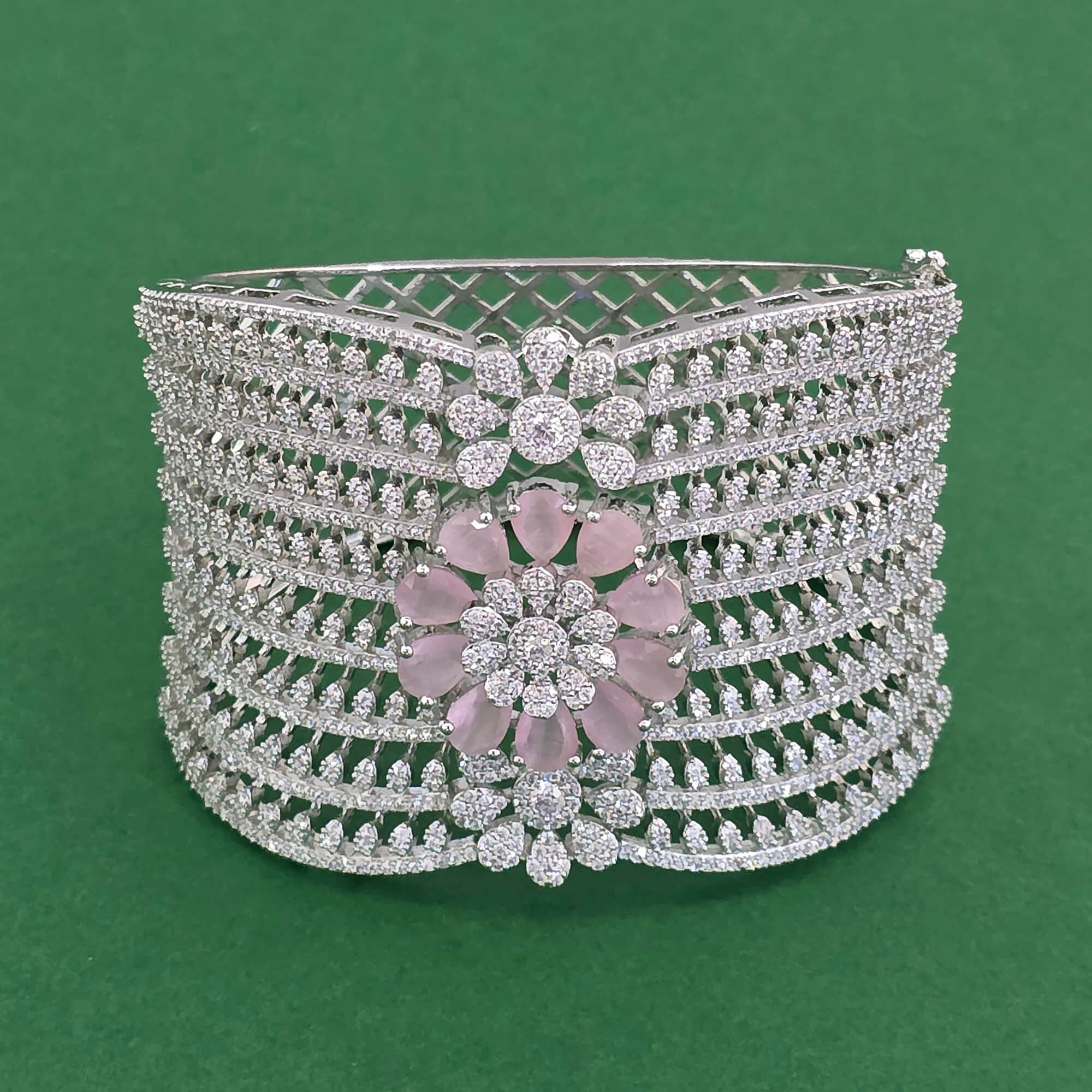 Kanhai Jewels Offers An Exclusive Collection Of Finest Quality Crafted Fashion Jewellery In Various Colors. We Make Sure That Our Collection Of Cz Broad Kada With Rhodium Plating Are Beautiful, Elegent & Will Surely Galvanize You, Because Our Products Are Unique, Comfortable, Fashion Forward & Very Popular For The Rich Look. Base Metal Of Our Product Is Alloy, I.E Mixing Of Copper & Brass. We Pack All The Products Using Quality Packaging Material To Ensure Safe And Secure Transportation.