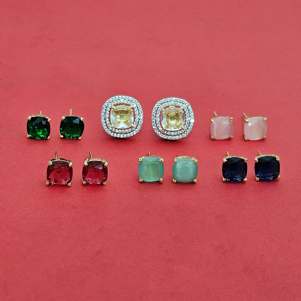 Home / American Diamond Earring / cz changeable tops with 2 tone rhodium plating