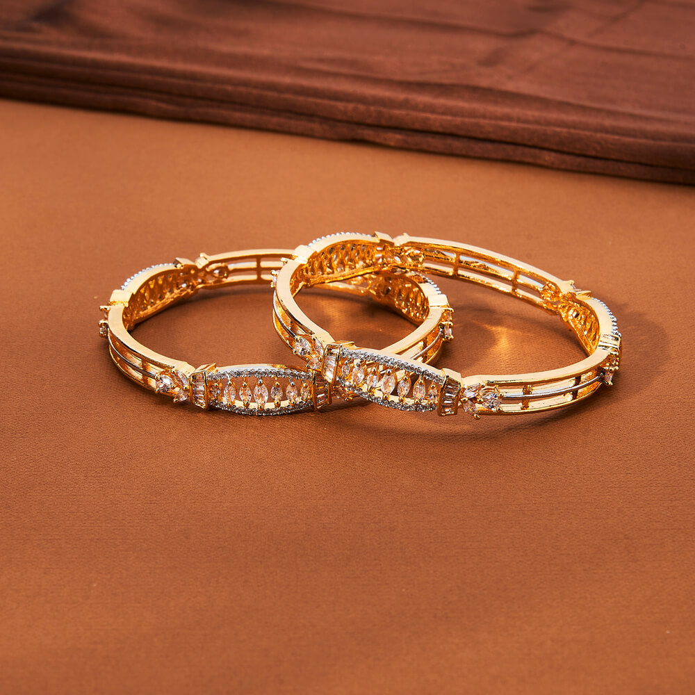 Kanhai Jewels offers an exclusive collection of finest quality crafted Fashion Jewellery in various colors. We make sure that our collection of Cz Classic Bangles With 2 Tone Plating are beautiful, elegent & will surely galvanize you, because our products are unique, comfortable, fashion forward & very popular for the rich look. Base Metal of our product is Alloy, i.e Mixing of Copper & Brass. We pack all the products using quality packaging material to ensure safe and secure transportation.