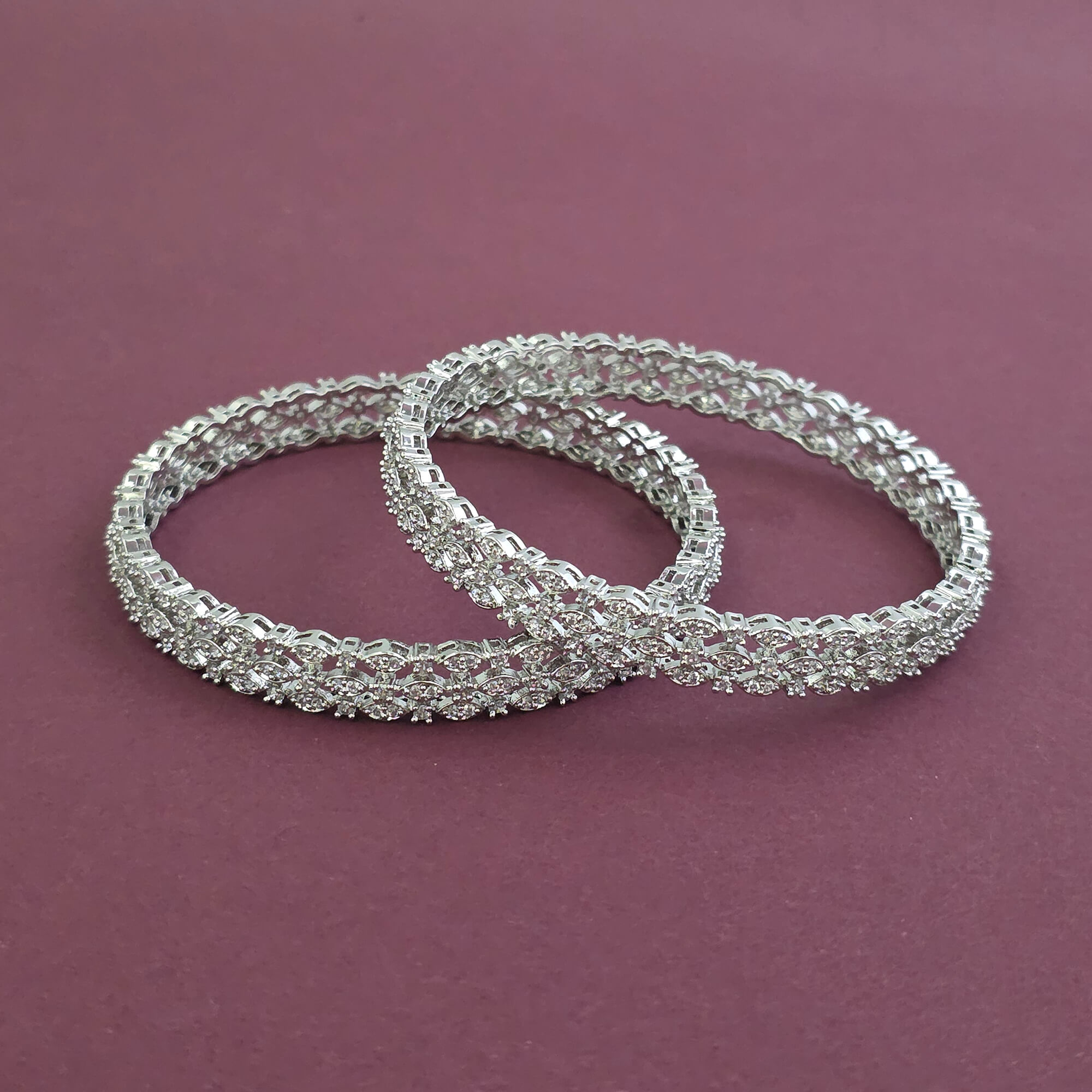 Home / American Diamond Bangles / cz classic bangles with rhodium plating