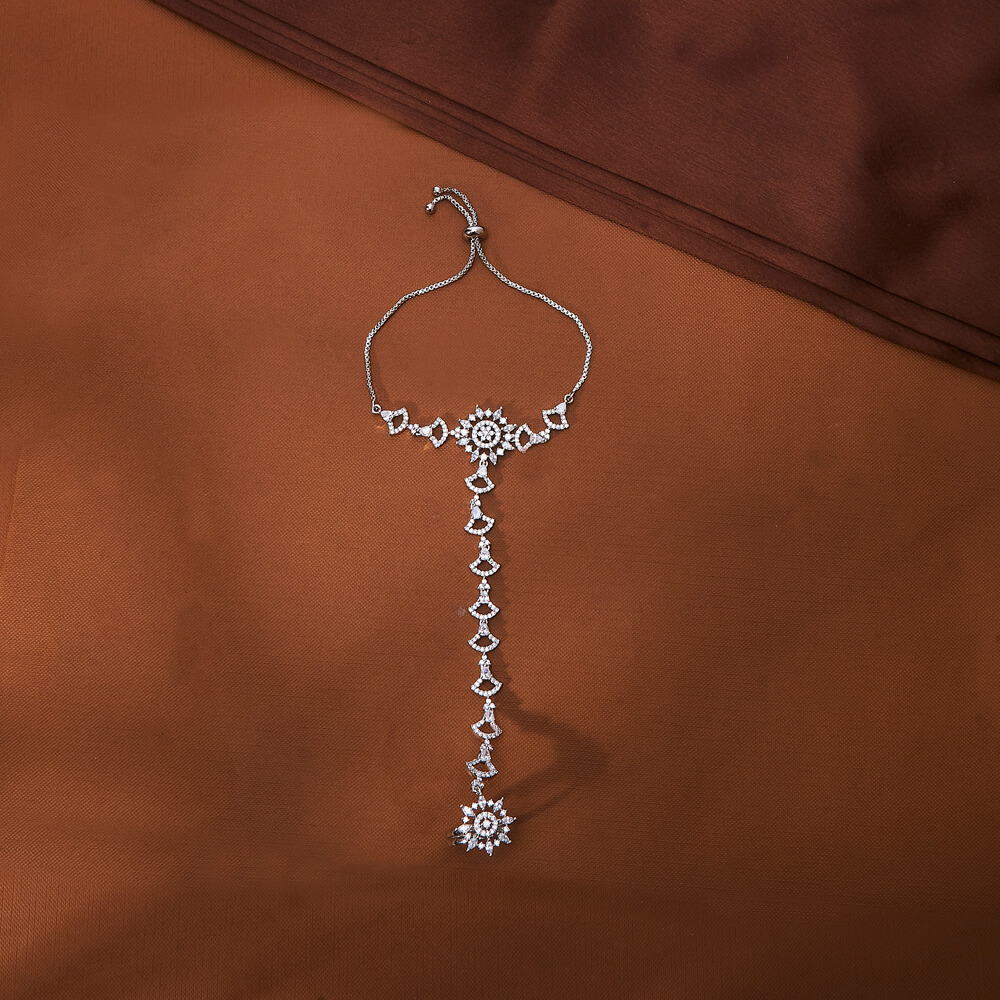 Kanhai Jewels offers an exclusive collection of finest quality crafted Fashion Jewellery in various colors. We make sure that our collection of Cz Classic Hath Pan With Rhodium 2 Tone plating are beautiful, elegent & will surely galvanize you, because our products are unique, comfortable, fashion forward & very popular for the rich look. Base Metal of our product is Alloy, i.e Mixing of Copper & Brass. We pack all the products using quality packaging material to ensure safe and secure transportation.