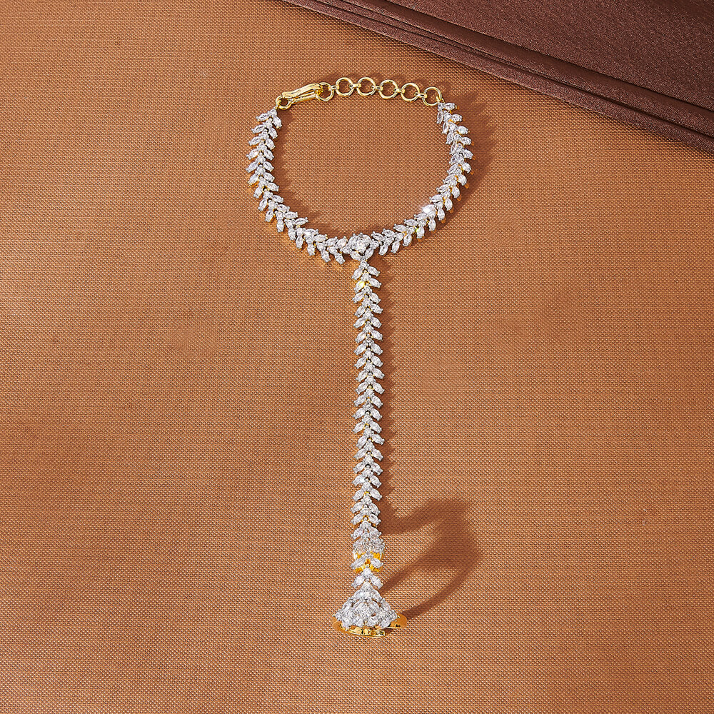 Kanhai Jewels offers an exclusive collection of finest quality crafted Fashion Jewellery in various colors. We make sure that our collection of Cz Classic Hath Pan With Rhodium 2 Tone plating are beautiful, elegent & will surely galvanize you, because our products are unique, comfortable, fashion forward & very popular for the rich look. Base Metal of our product is Alloy, i.e Mixing of Copper & Brass. We pack all the products using quality packaging material to ensure safe and secure transportation.