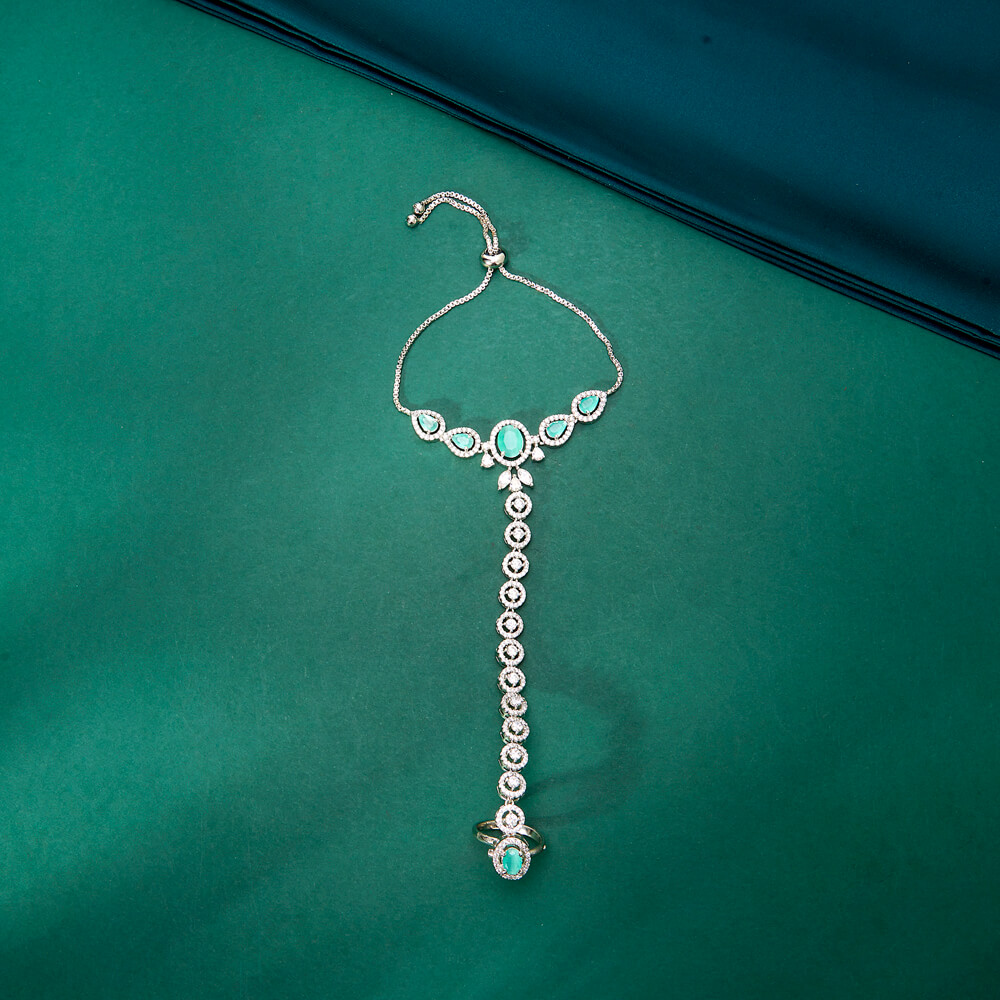 Kanhai Jewels offers an exclusive collection of finest quality crafted Fashion Jewellery in various colors. We make sure that our collection of Cz Classic Hath Pan With Rhodium Plating are beautiful, elegent & will surely galvanize you, because our products are unique, comfortable, fashion forward & very popular for the rich look. Base Metal of our product is Alloy, i.e Mixing of Copper & Brass. We pack all the products using quality packaging material to ensure safe and secure transportation.