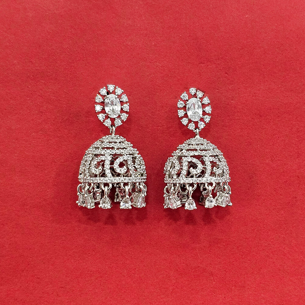 Home / American Diamond Earring / cz classic jhumki with mehndi 2 tone rhodium plating