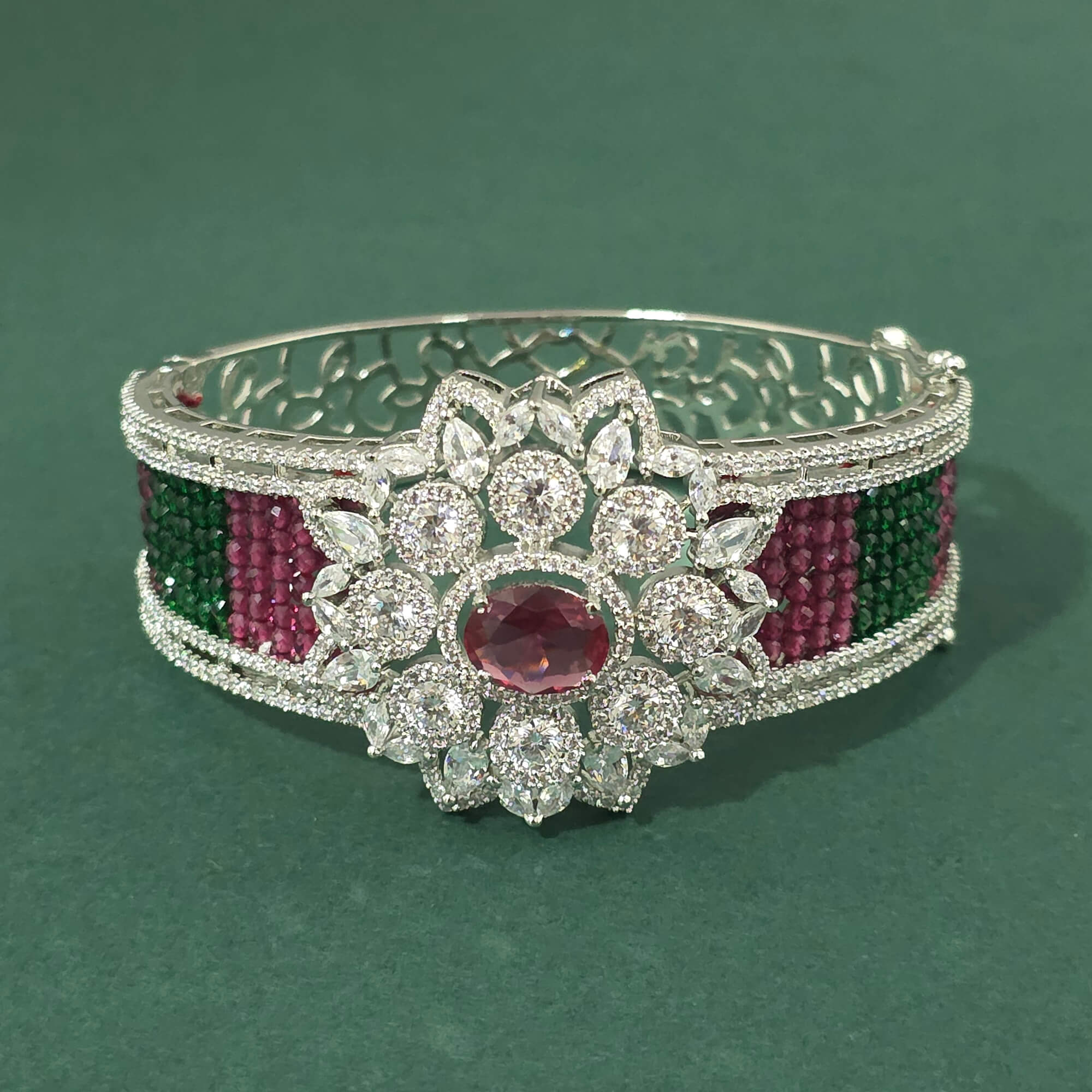 Kanhai Jewels offers an exclusive collection of finest quality crafted Fashion Jewellery in various colors. We make sure that our collection of Cz Classic Kada With Rhodium Plating are beautiful, elegent & will surely galvanize you, because our products are unique, comfortable, fashion forward & very popular for the rich look. Base Metal of our product is Alloy, i.e Mixing of Copper & Brass. We pack all the products using quality packaging material to ensure safe and secure transportation.