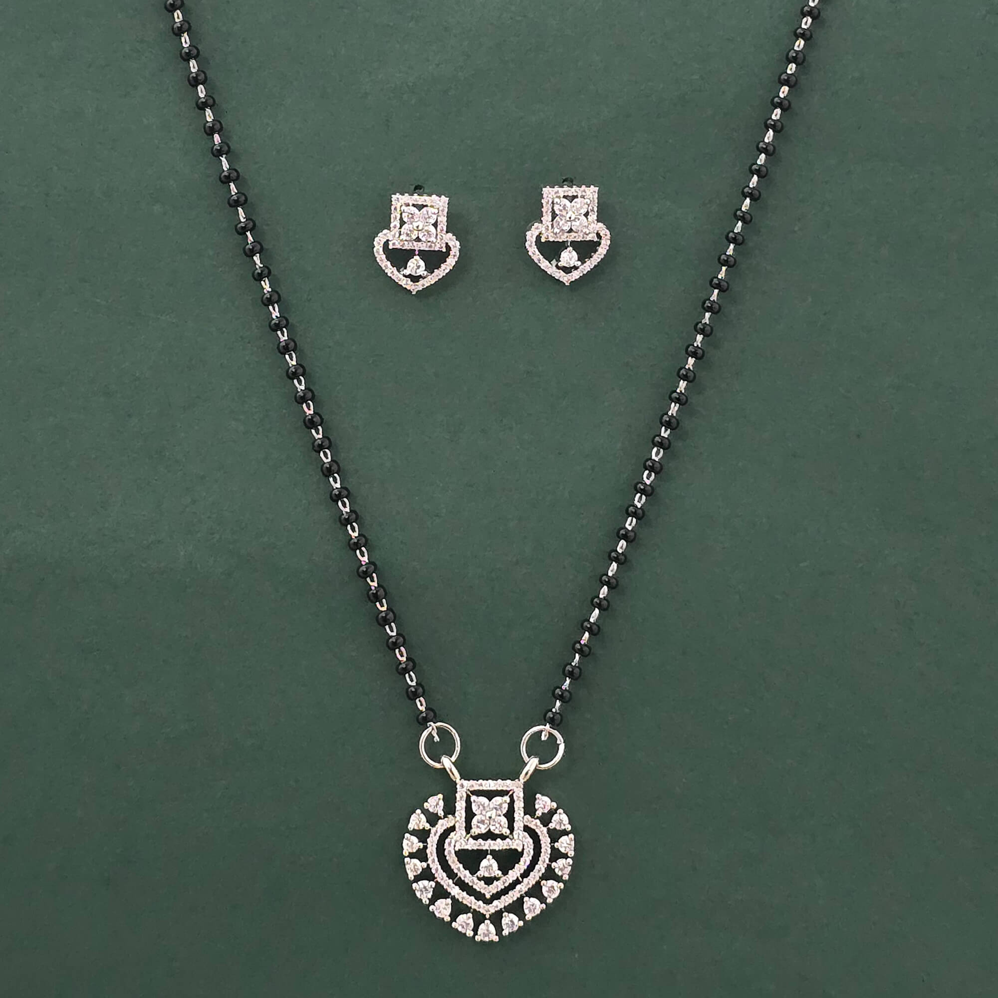 Home / American Diamond Mangalsutra / cz classic mangalsutra with 2 tone rhodium plating