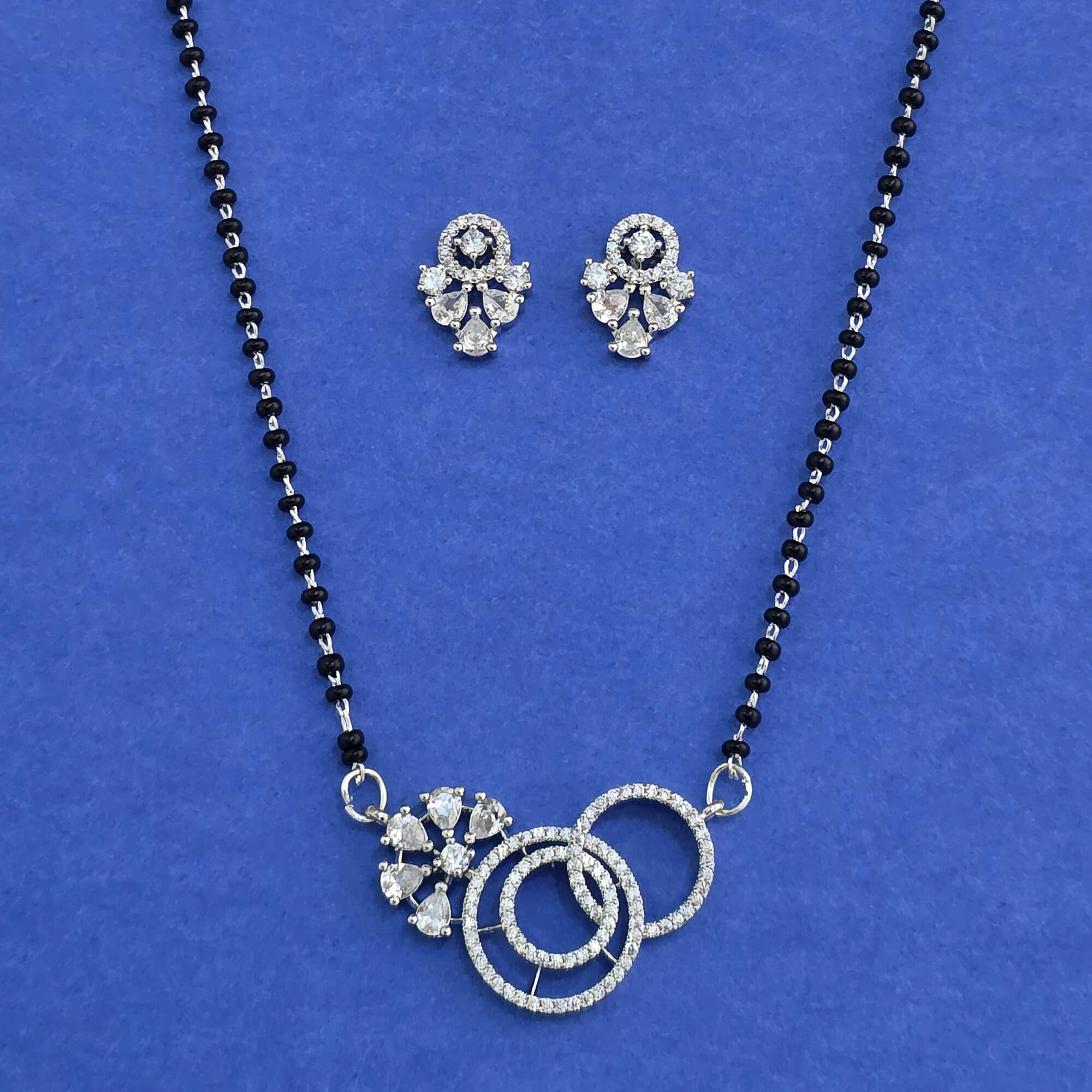 Kanhai Jewels offers an exclusive collection of finest quality crafted Fashion Jewellery in various colors. We make sure that our collection of Cz Classic Mangalsutra With 2tone Plating Rhodium Plating are beautiful, elegent & will surely galvanize you, because our products are unique, comfortable, fashion forward & very popular for the rich look. Base Metal of our product is Alloy, i.e Mixing of Copper & Brass. We pack all the products using quality packaging material to ensure safe and secure transportation.
