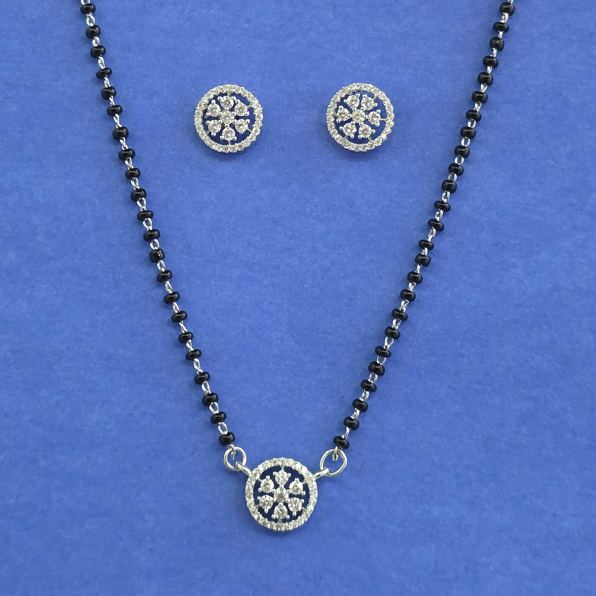 Home / American Diamond Mangalsutra / cz classic mangalsutra with rhodium plating 2 tone plating