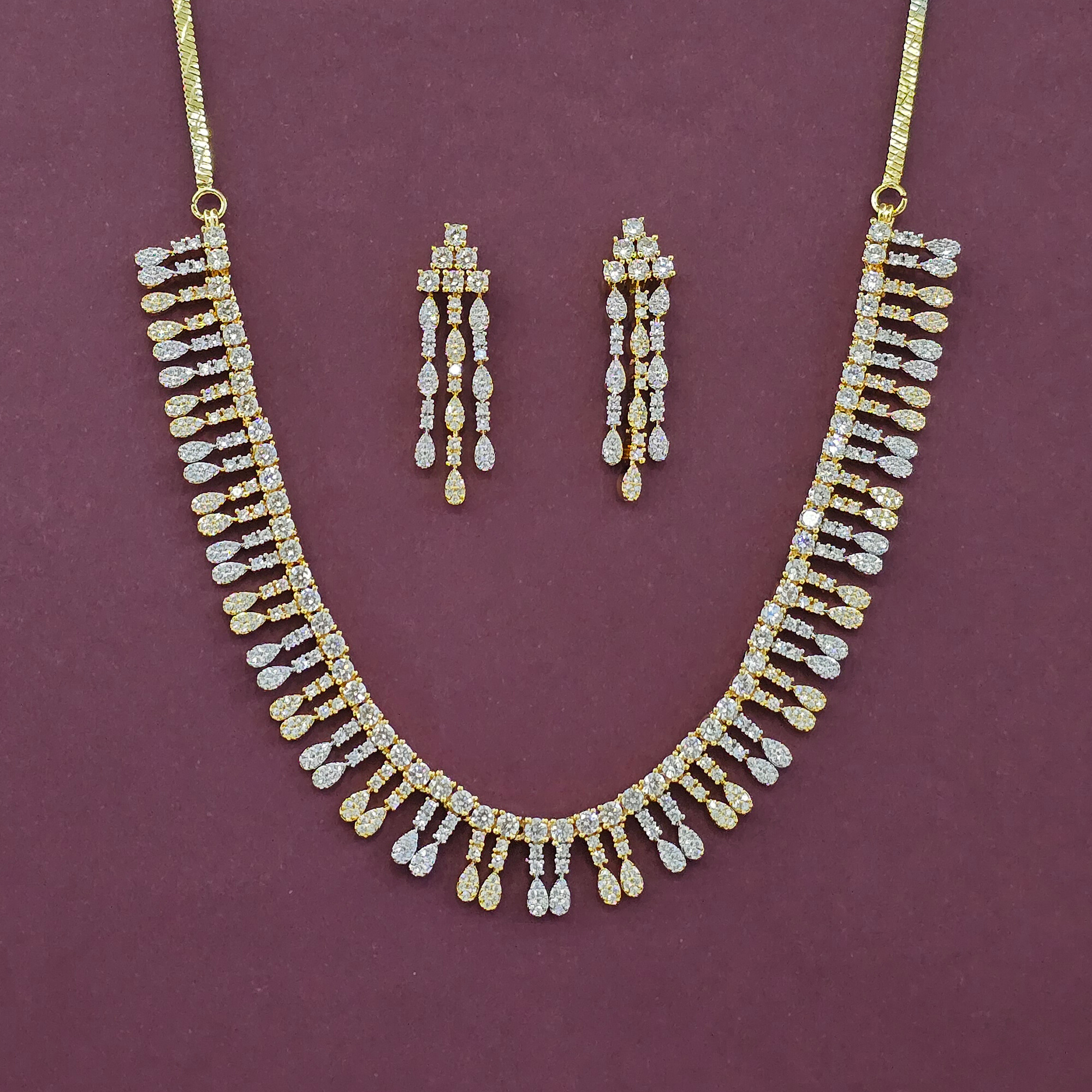 Home / American Diamond Necklace / cz classic necklace set with 2 tone plating