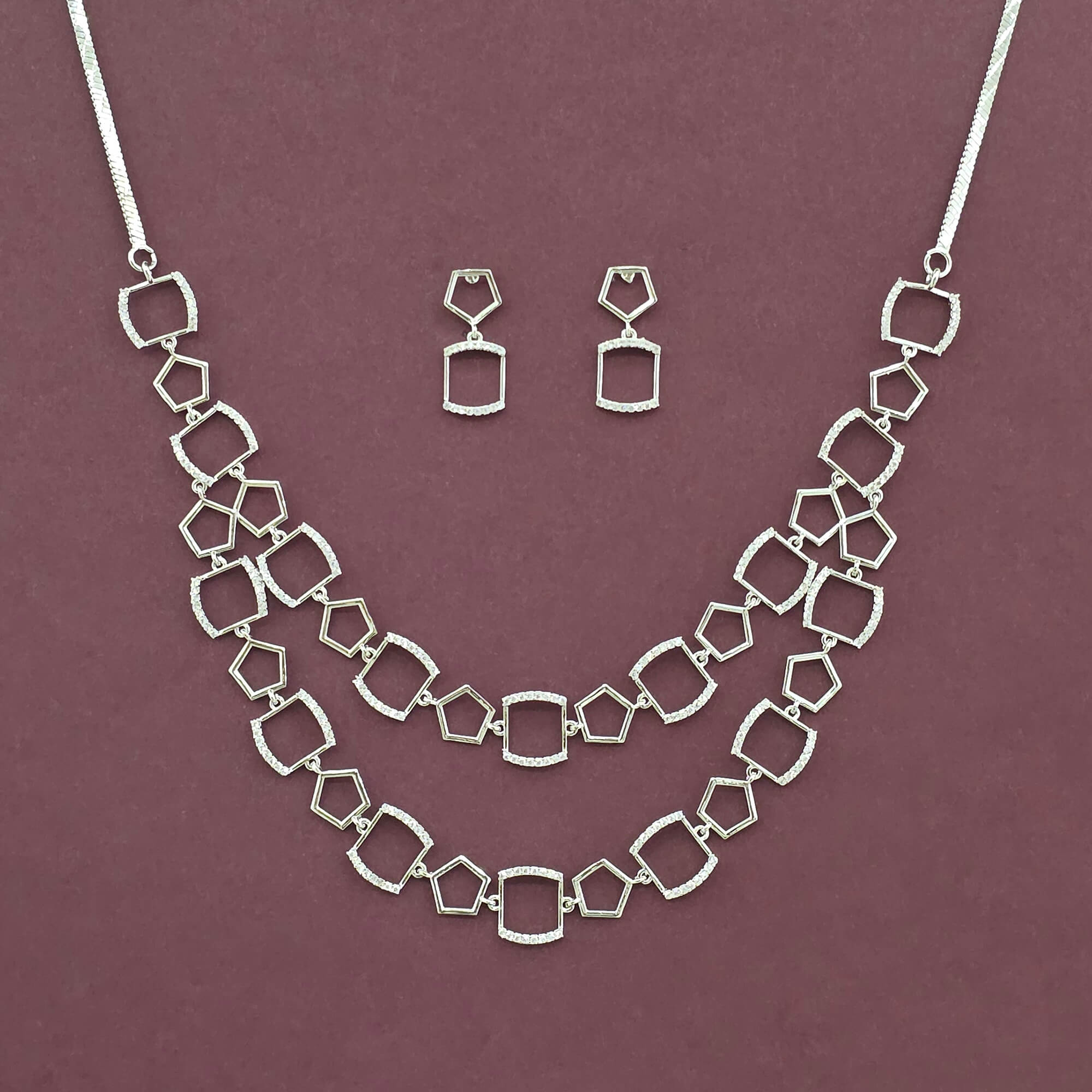 Home / American Diamond Necklace / cz classic necklace set with 2 tone rhodium plating